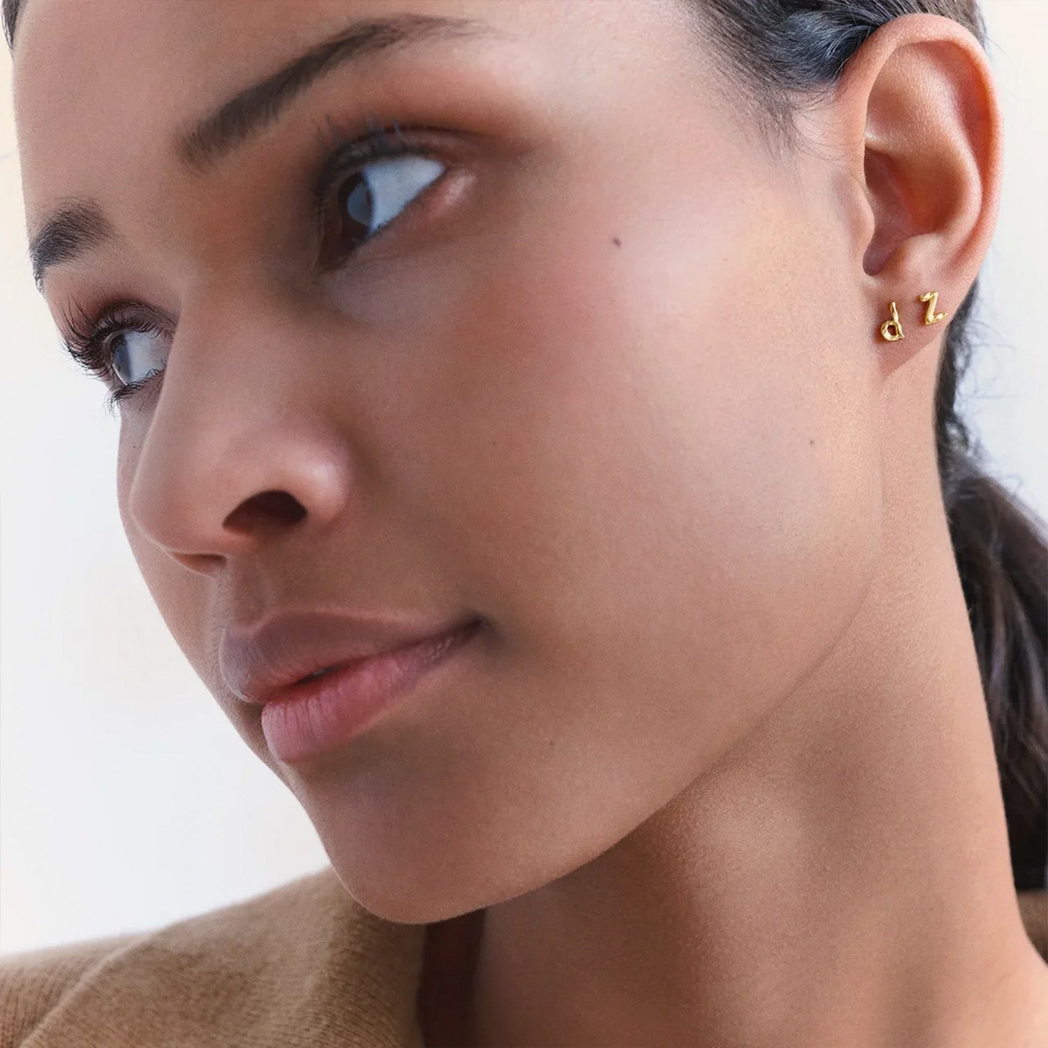 Maanesten - Alphabet ørestik D, 1 stk. - Forgyldt sølv