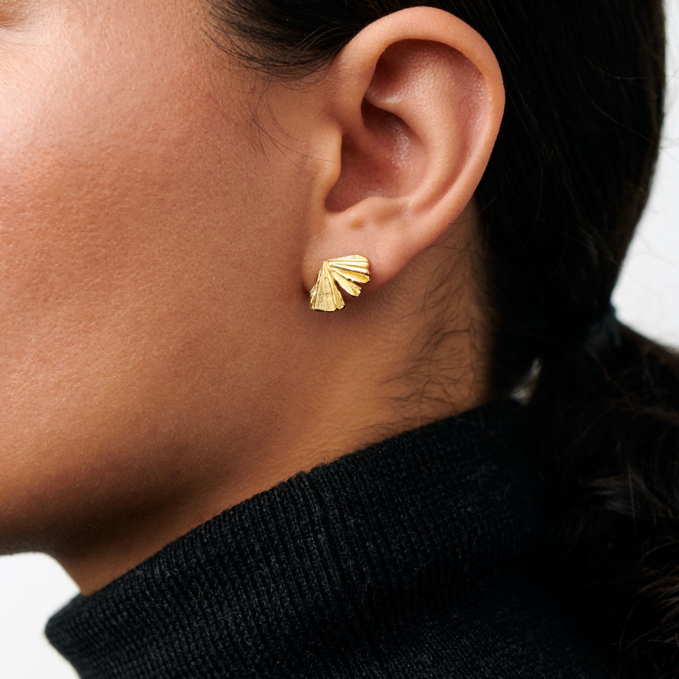 De fine detaljer i ørestikkernes design fanger lyset smukt og skaber en varm, gylden glød. Den forgyldte overflade fremhæver de delikate bladformer, hvilket giver et indtryk af lethed og elegance. Ørestikkerne er en subtil, men iøjnefaldende tilføjelse til ethvert outfit.