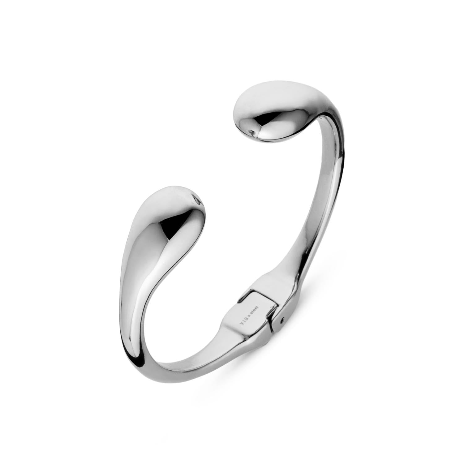 Armringens sølvfarvede overflade reflekterer lyset smukt og fremhæver dens glatte, polerede tekstur. Den åbne form giver en moderne kant, mens den samtidig sikrer en behagelig pasform. Med en diameter på 58 mm er den både iøjnefaldende og subtil, hvilket gør den til et alsidigt tilbehør i enhver smykkesamling.