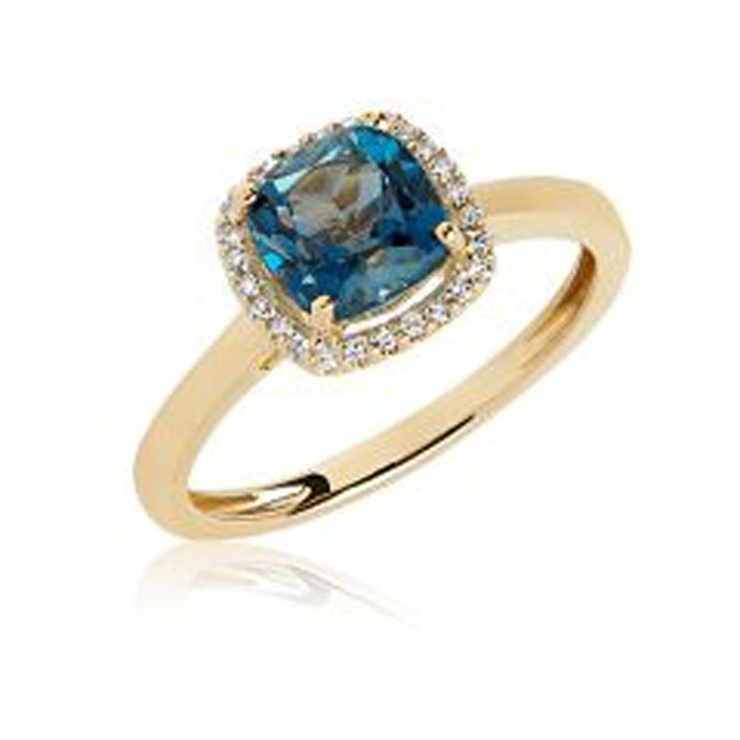 Aveny COLLECTION - Rosetring, Londonblå topas/26 diamanter - 14 kt. guld