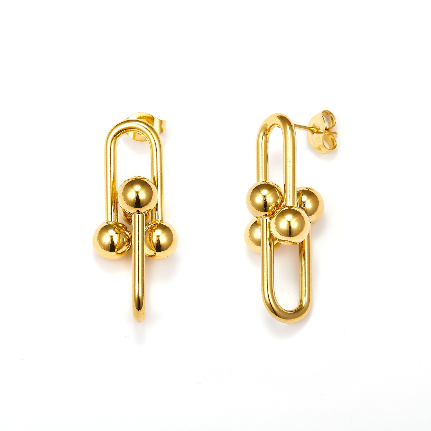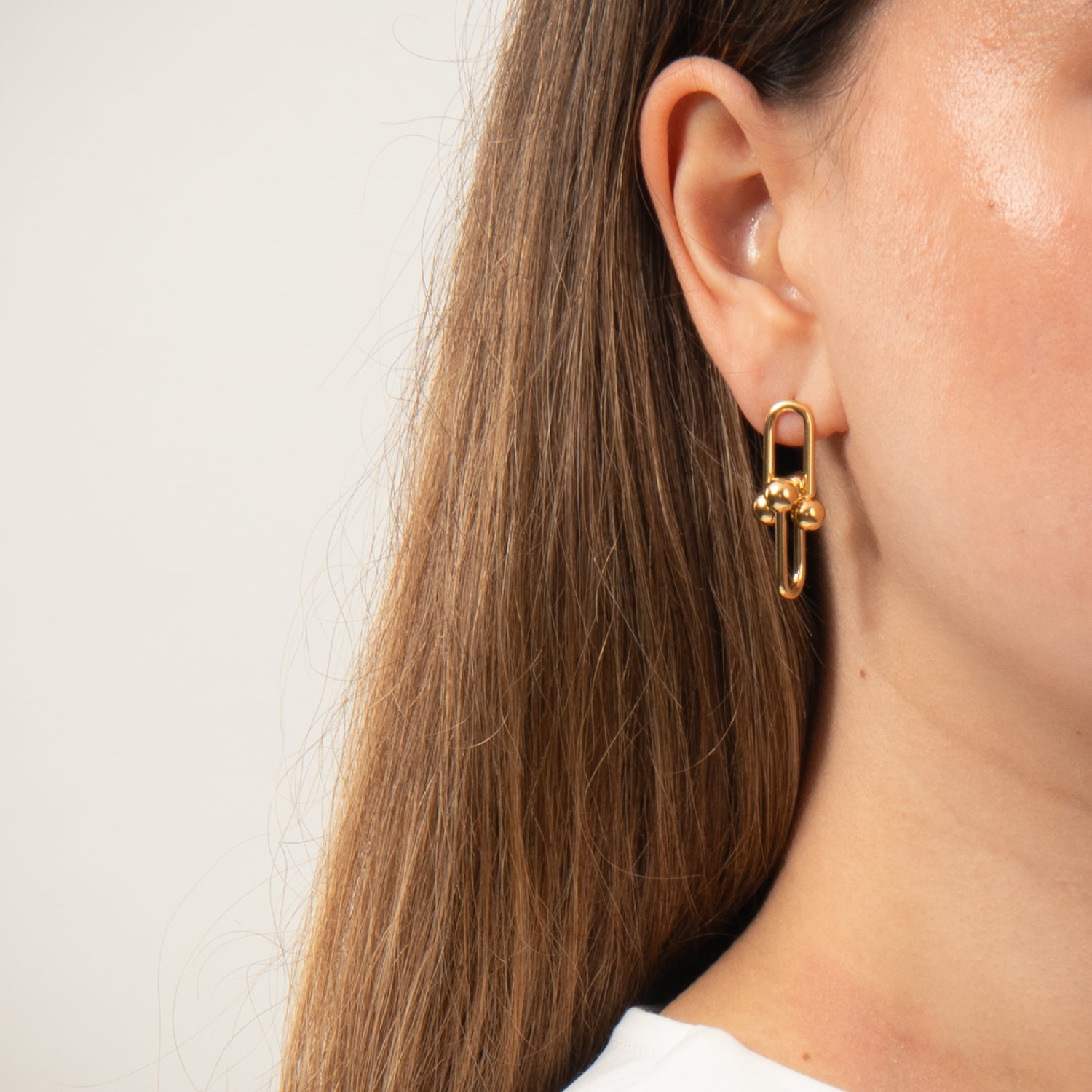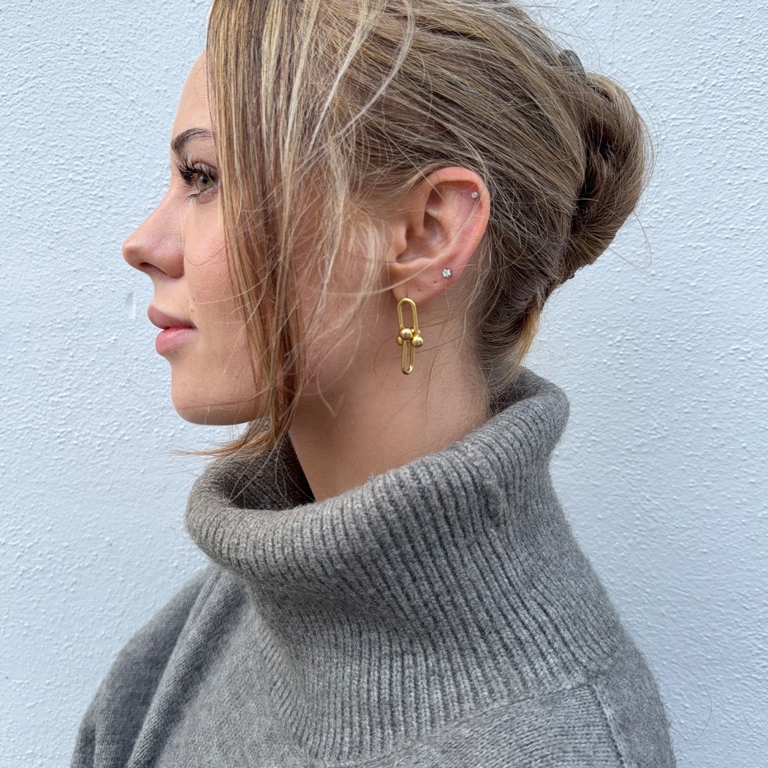 Oplev elegance og stil med Bonito øreringene fra Baía Jewellery. Disse øreringe er skabt til kvinden, der ønsker at tilføje et strejf af luksus til sin hverdag. Med deres smukke guldfarve og rustfrie stål med PVD guldbelægning, er de både holdbare og betagende.