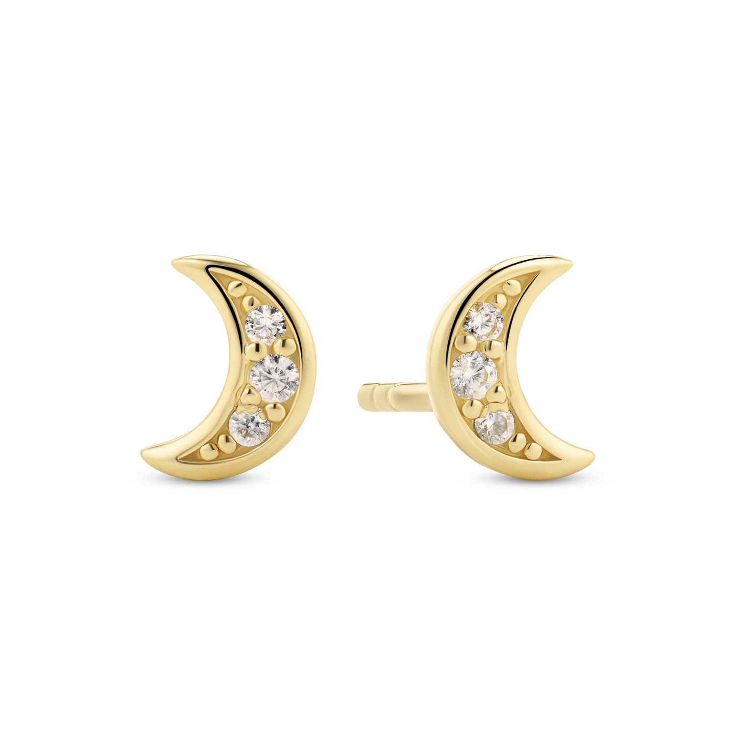 Designet af Luna øreringene er inspireret af månens mystik, hvilket ses i den delikate halvmåneform. Den forgyldte overflade kombineret med de klare zirkonia sten giver et sofistikeret udtryk, der passer perfekt til enhver stil. Øreringene er lette og behagelige at bære, hvilket gør dem ideelle til daglig brug.