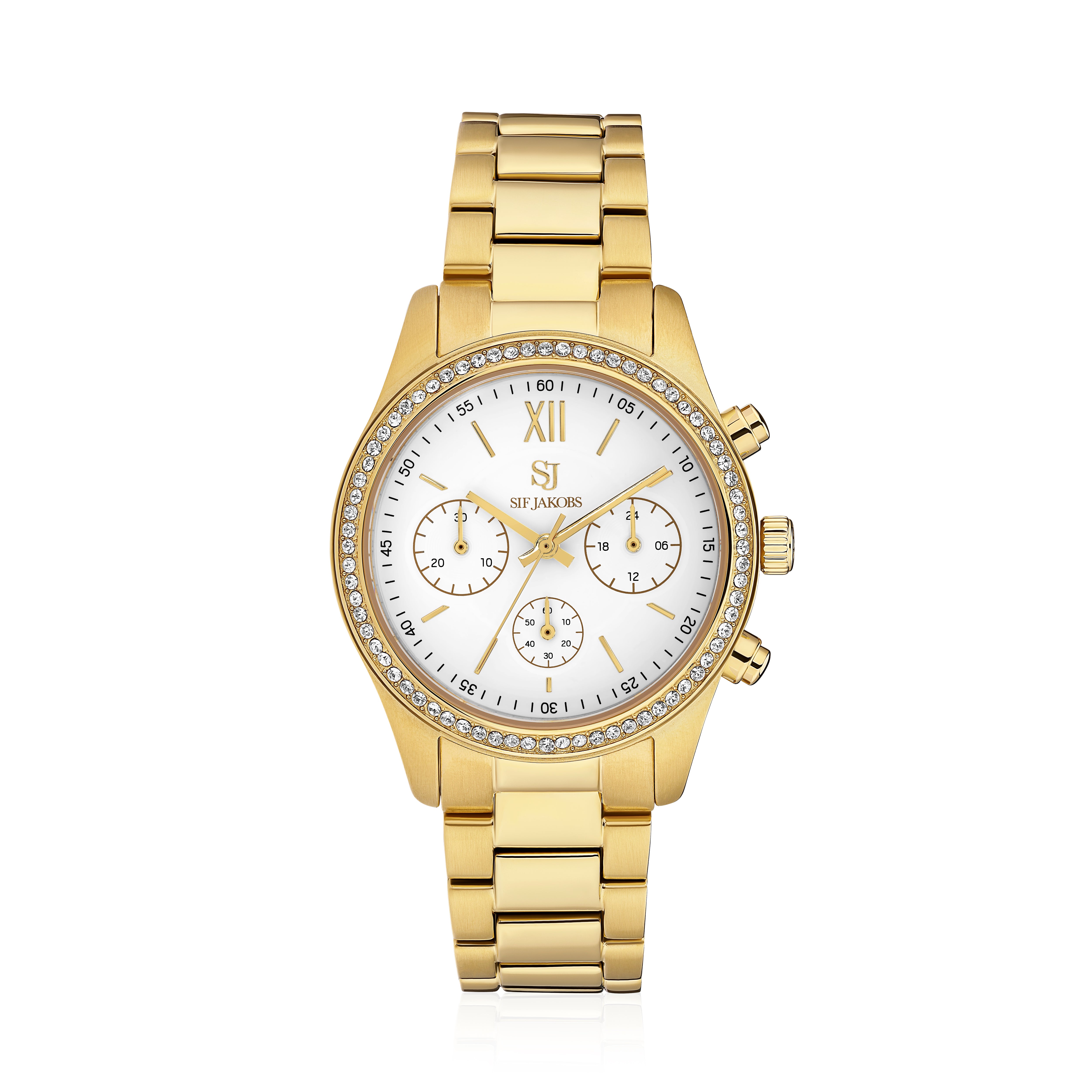 Sif Jakobs - Domenica ur med hvid urskive, zirkonia - Guld PVD rustfrit stål