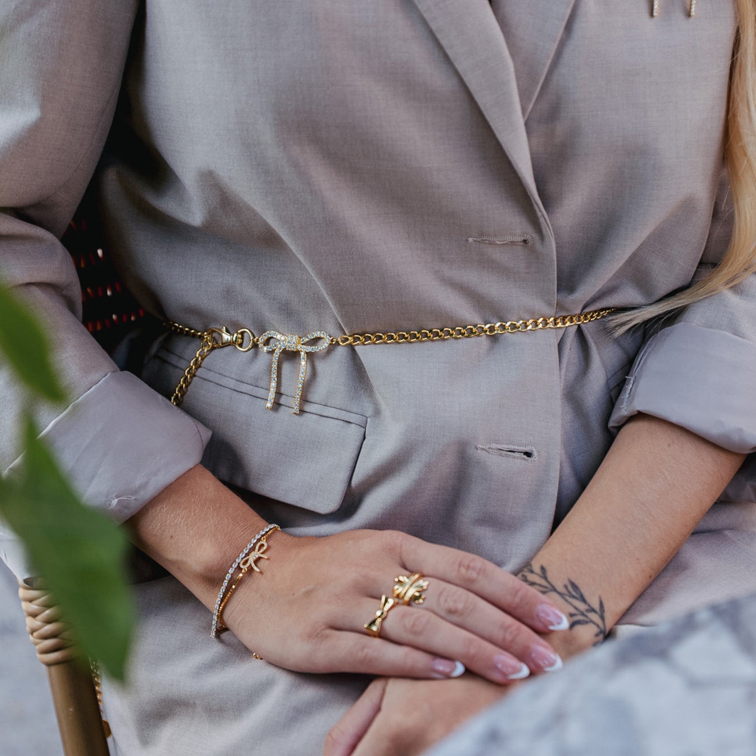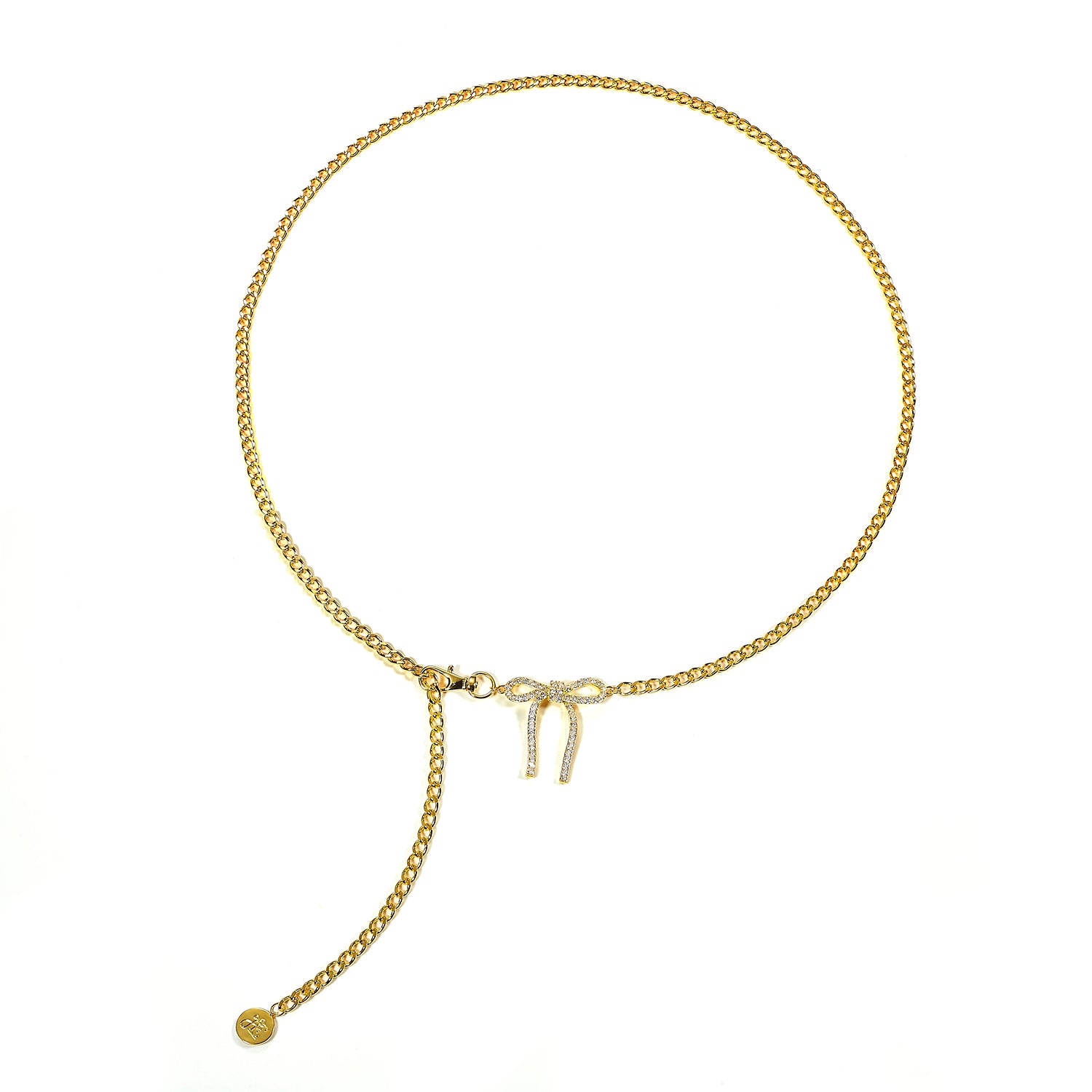 Vibholm X Julie Elgaard - Forever Bow mavekæde, 107 cm - Forgyldt messing