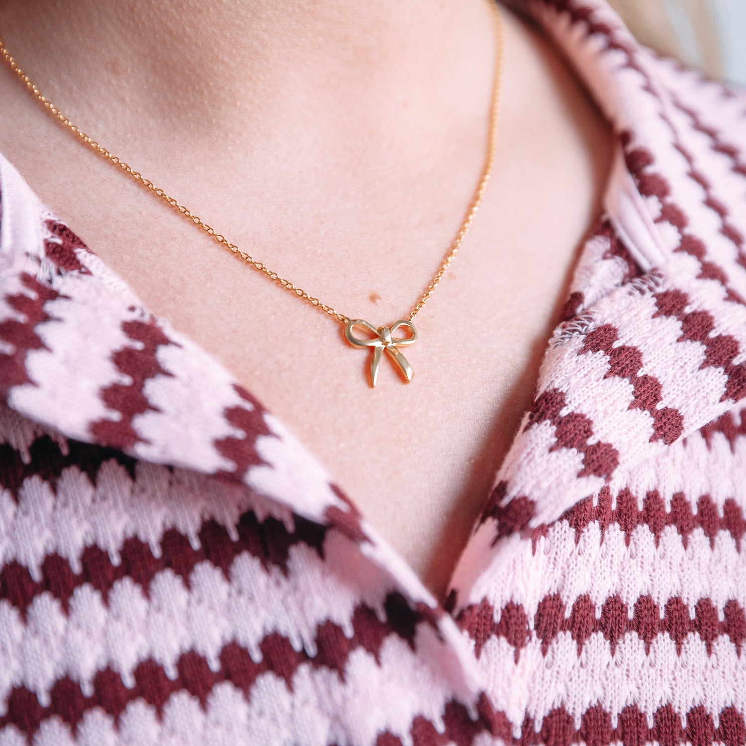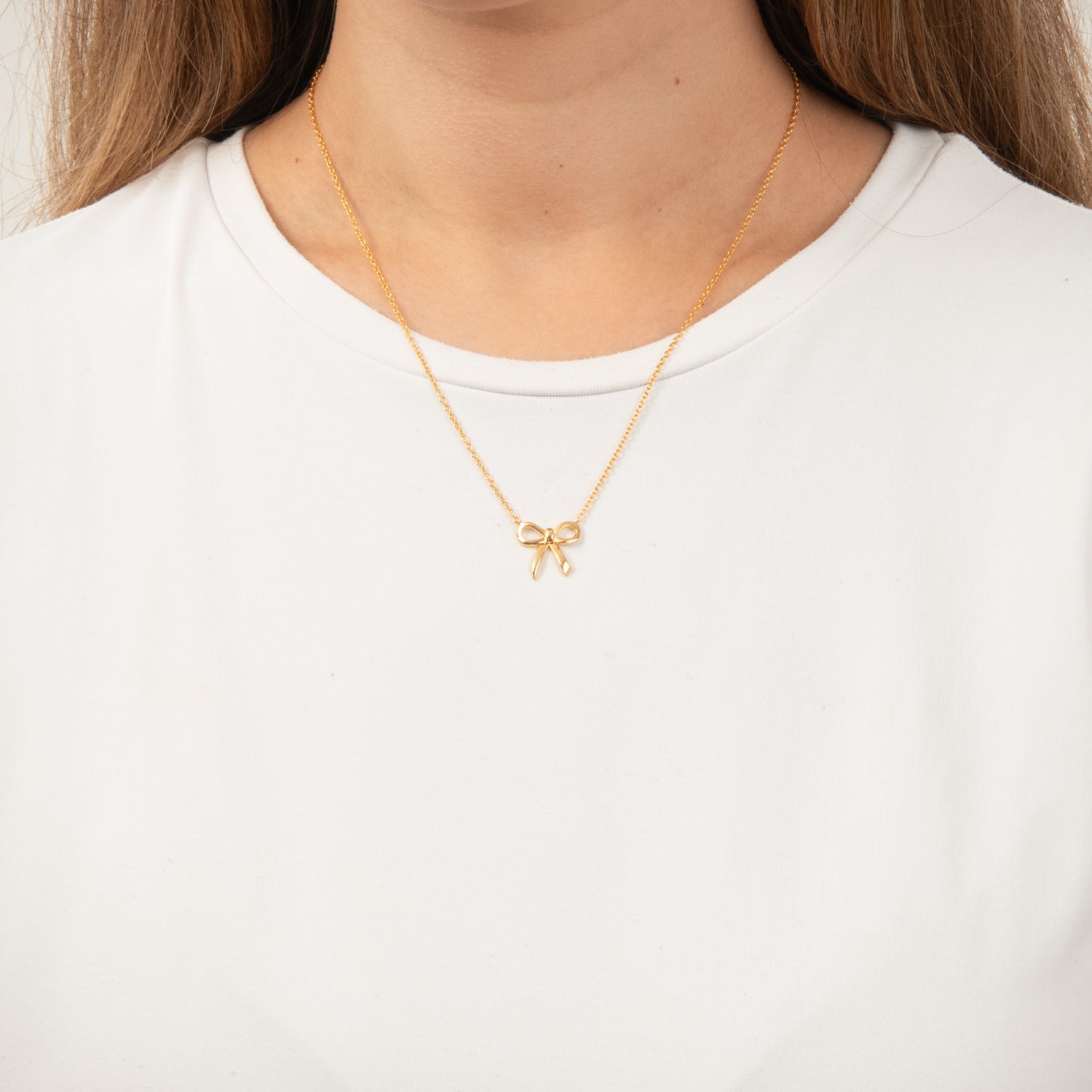 Vibholm x Støt Brysterne - Sløjfe halskæde, 42+5 cm - Forgyldt sølv
