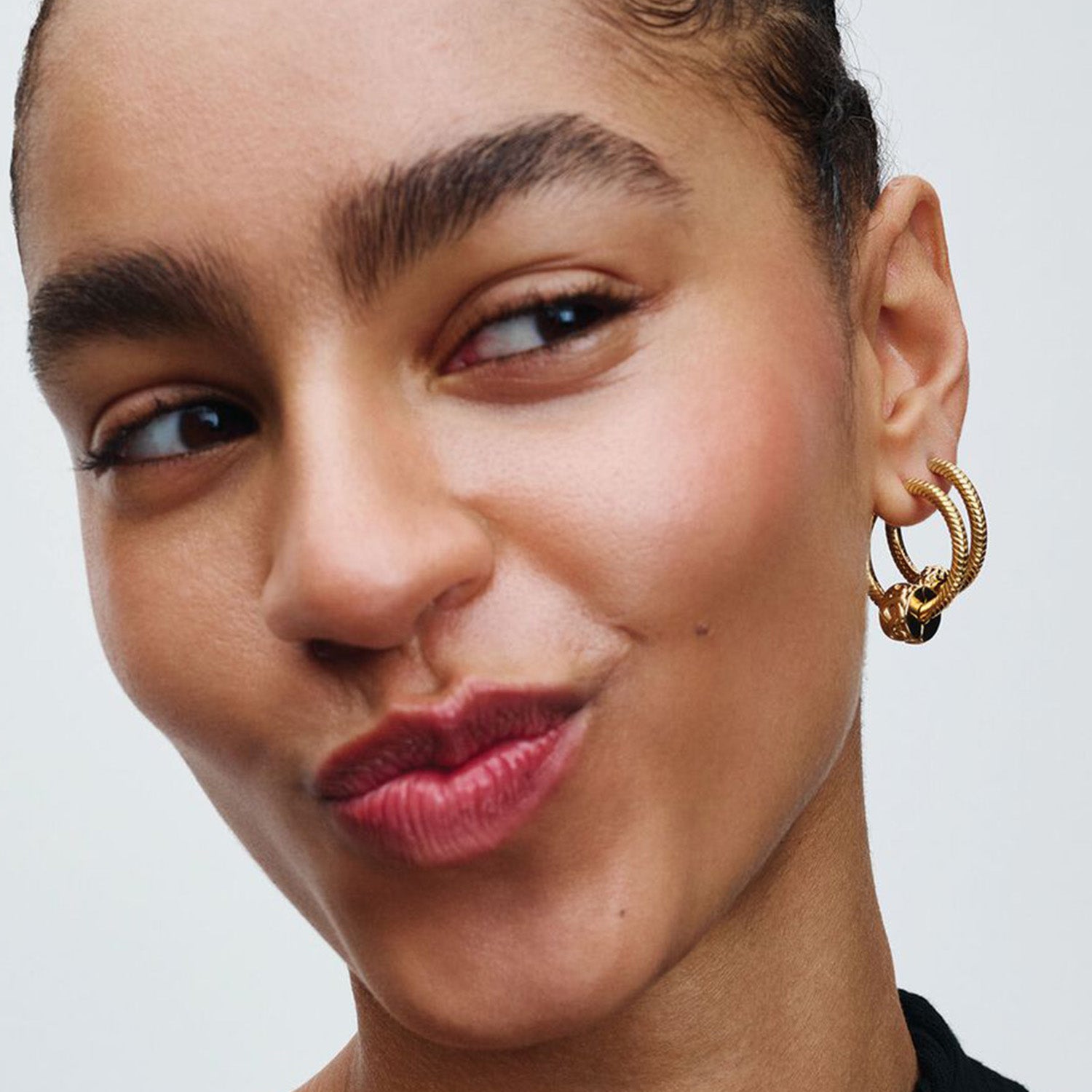 Den knottede struktur på charmen skaber en smuk visuel effekt, der fanger lyset og tilføjer en subtil glans til dit look. Den forgyldte overflade giver en varm og luksuriøs følelse, der komplementerer enhver stil. Med sit indviklede design af sammenflettede hjerter symboliserer denne charm evig kærlighed og forbindelse.