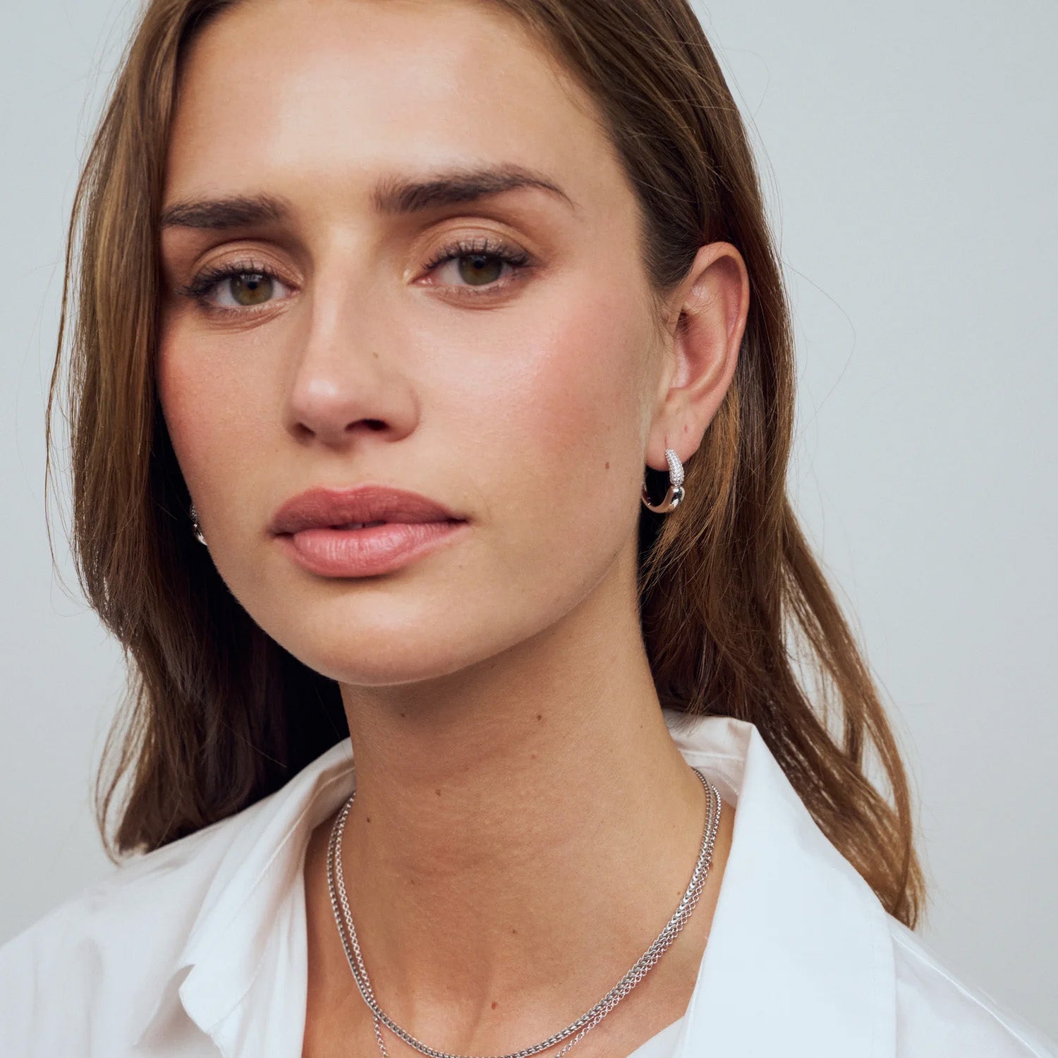 Oplev den tidløse elegance med Sif Jakobs' Goccia Creolo Grande øreringe. Disse smukke øreringe er fremstillet i skinnende sølv og prydet med funklende zirkonia-sten, der tilføjer et strejf af luksus til ethvert outfit.