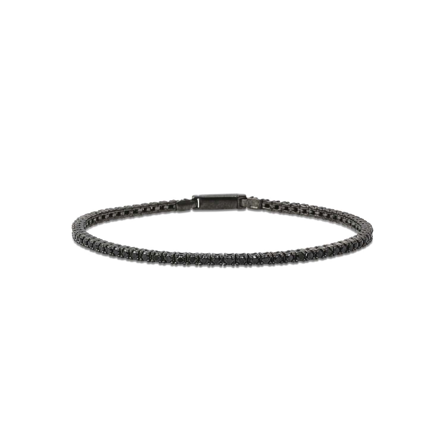 Aveny COLLECTION - Tennisarmbånd til mænd, sort zirkon/20 cm - Oxyderet sølv