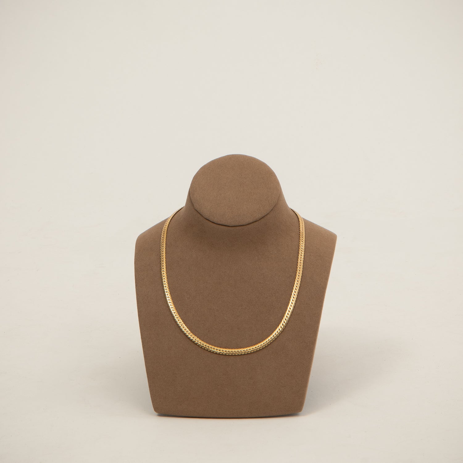 En halskæde med styrke, elegance og høj karat. Denne flade panser halskæde fra Vibholm ReGold er udført i 18 kt. guld og måler 45 cm i længden. Kæden ligger solidt og komfortabelt om halsen og tilfører ethvert look et strejf af eksklusivitet – uden at virke overdreven. Den dybe, varme glød fra det 18 kt. guld og det gennemførte design gør halskæden til et smykke, der både kan bæres alene som et statement eller kombineres med andre kæder for et mere personligt og lagdelt udtryk.