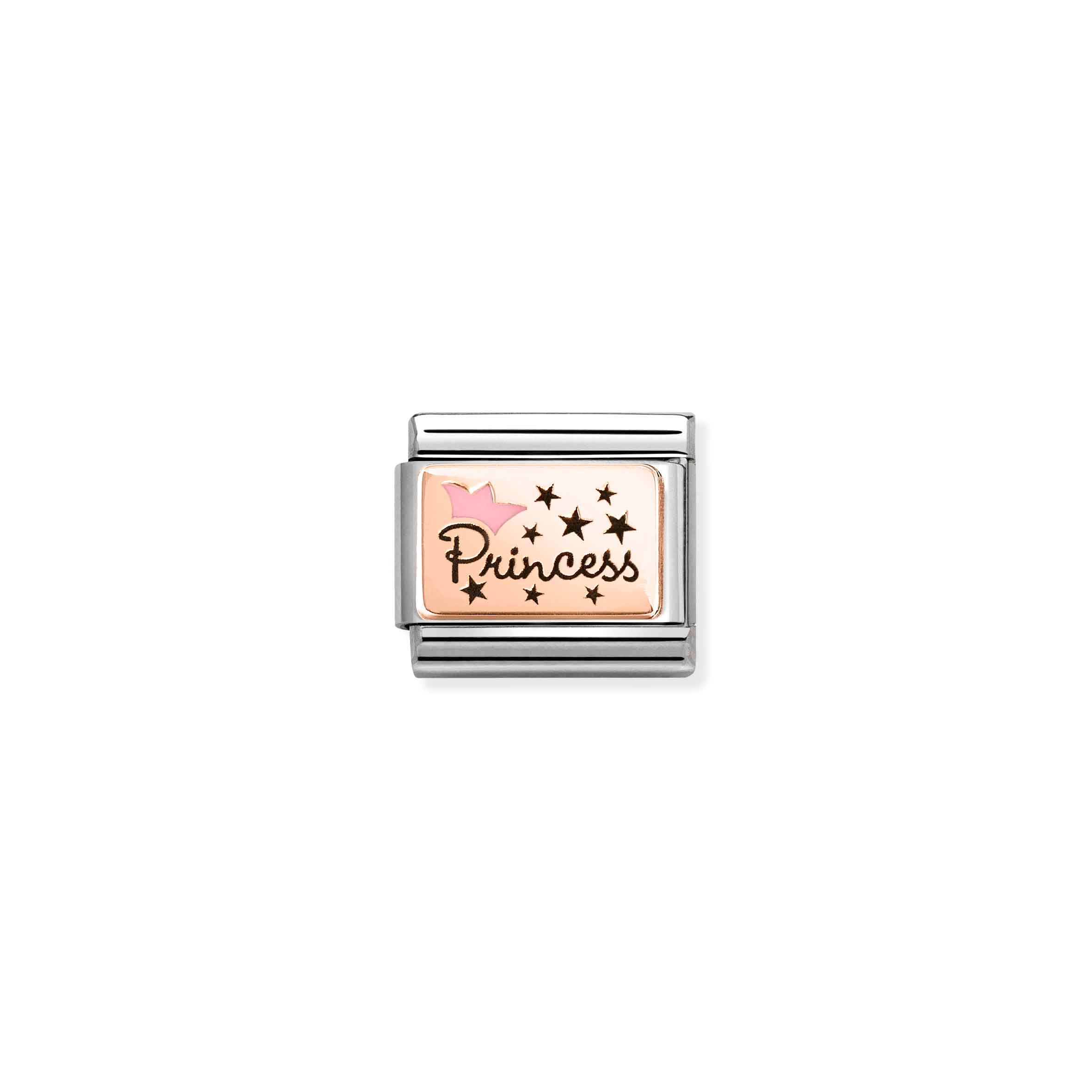 Opdag den elegante charme ved Nomination's Princess led i 9 kt. rosaguld og rustfrit stål. Dette smykke er en perfekt gave til hende, der fortjener noget særligt. Med sin unikke kombination af farver og symboler er det ideelt til studentergaver og dimittender.
