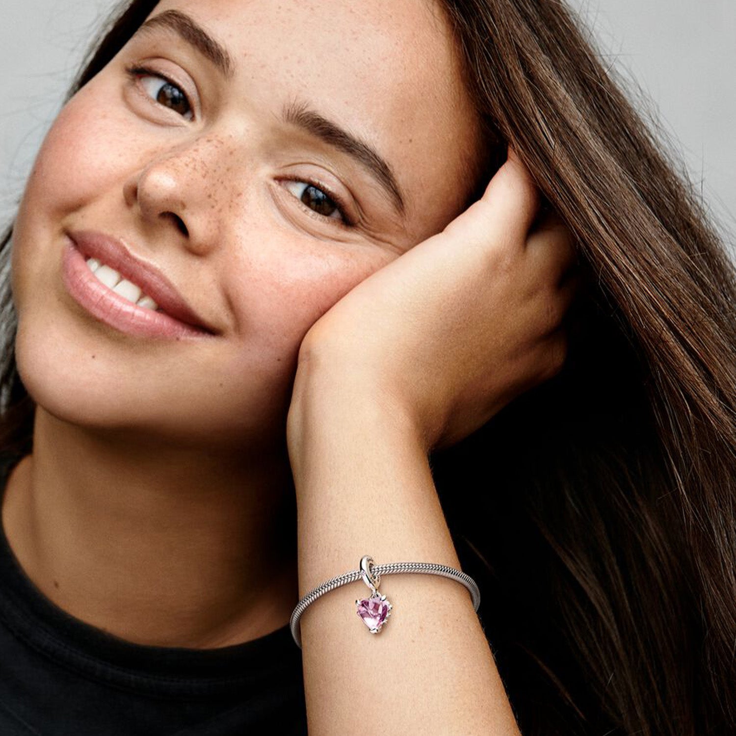 Dette charm er en del af Pandoras kollektion og er designet til kvinder, der ønsker at udtrykke deres personlige stil med et meningsfuldt smykke. Den sølvfarvede overflade giver en tidløs elegance, mens de pink zirkonia sten tilføjer en moderne og feminin touch.