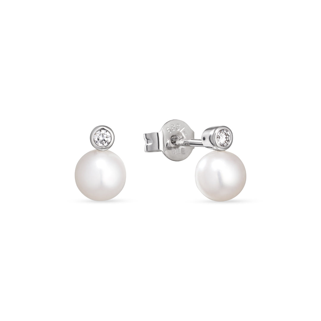 Aveny LUXURY - Øreringe med Ferskvandsperle og Diamanter i 14 kt. Hvidguld