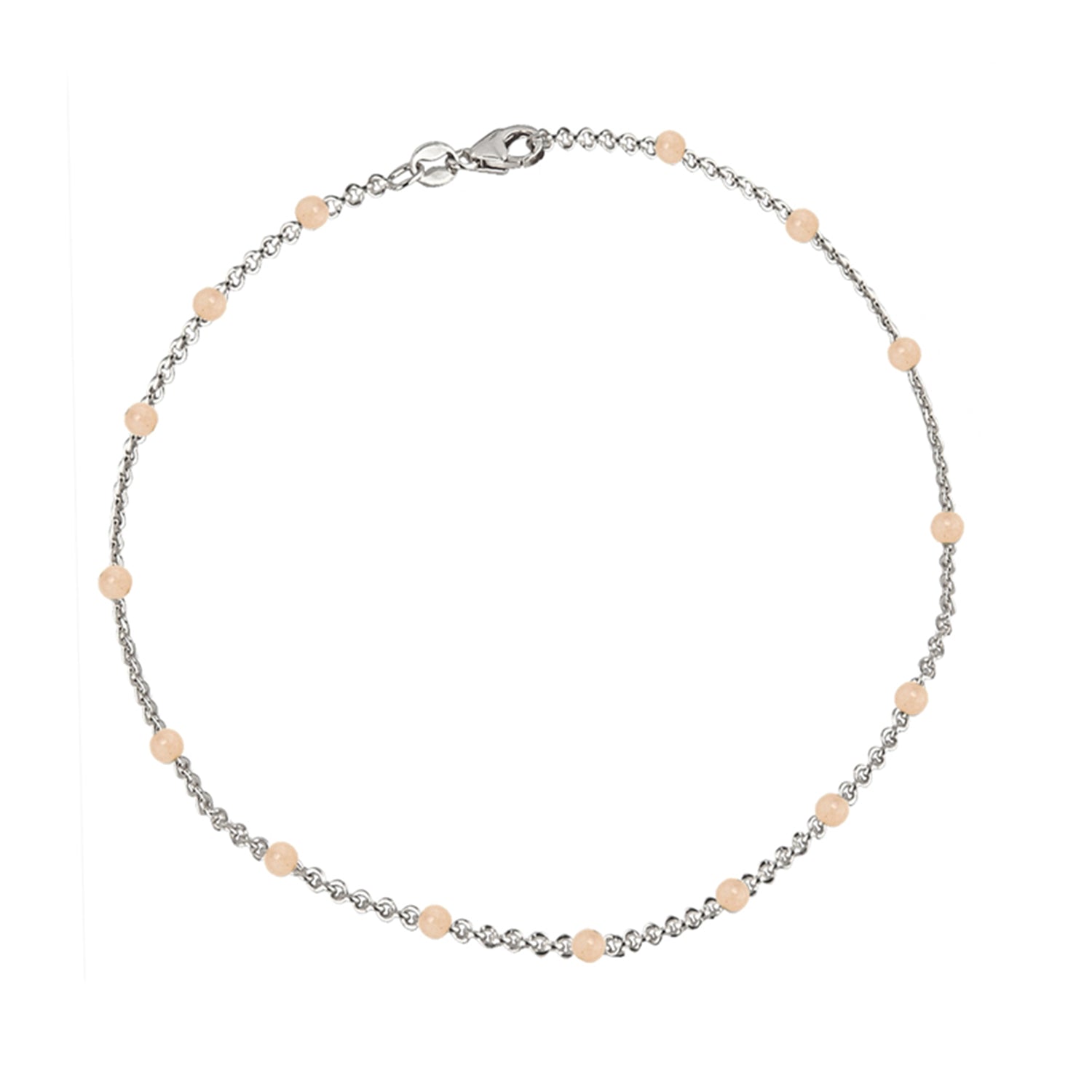 - Delikat Farvespil: De rosa emaljeperler tilføjer et subtilt og feminint touch til det skinnende sølv.
