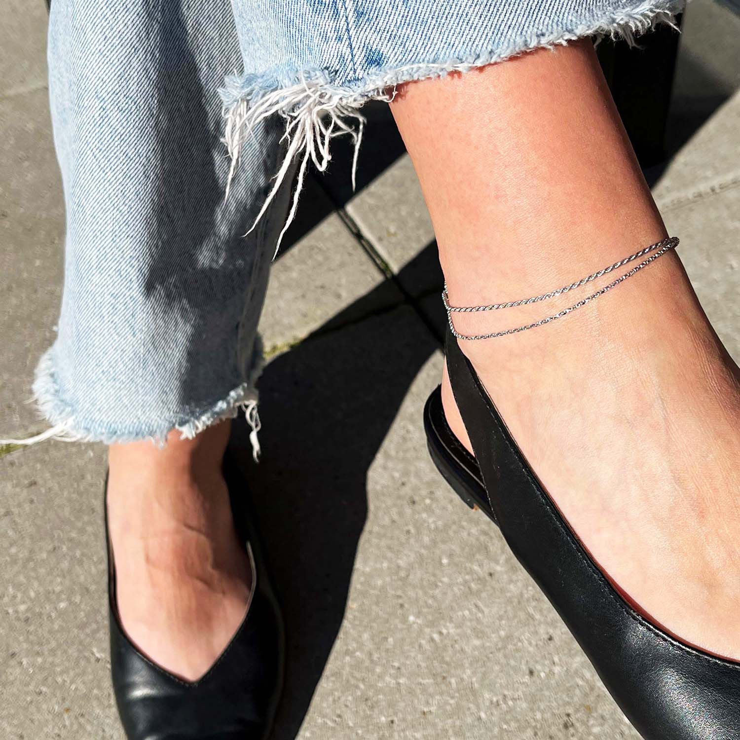 Scrouples - Dobbelt twist cordel ankelkæde i sølv