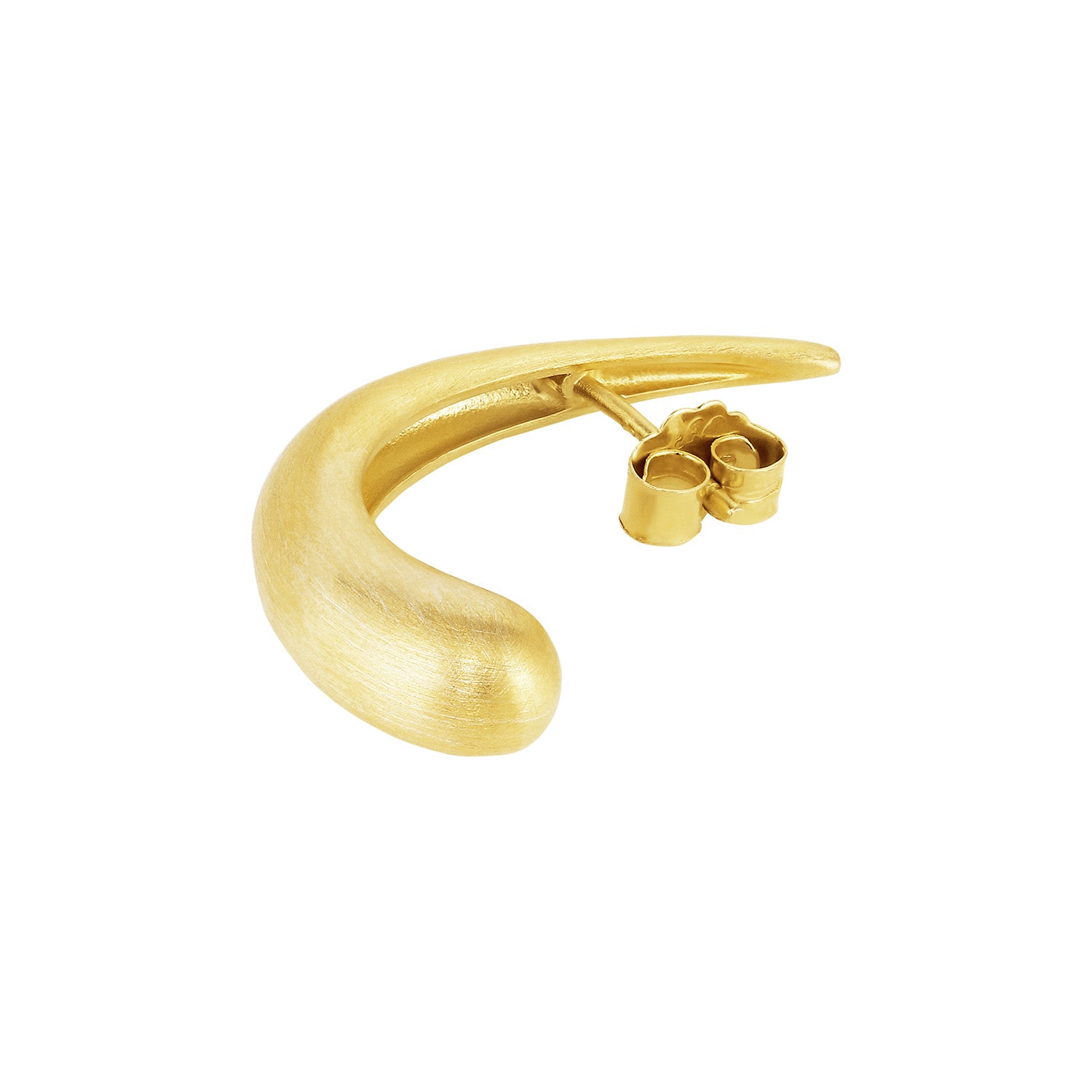 Øreringen har en smuk, buet form, der fanger lyset på en subtil måde. Den forgyldte overflade giver et varmt og indbydende udtryk, mens den glatte tekstur sikrer en behagelig følelse mod huden. Designet er både enkelt og iøjnefaldende, hvilket gør det nemt at kombinere med andre smykker.