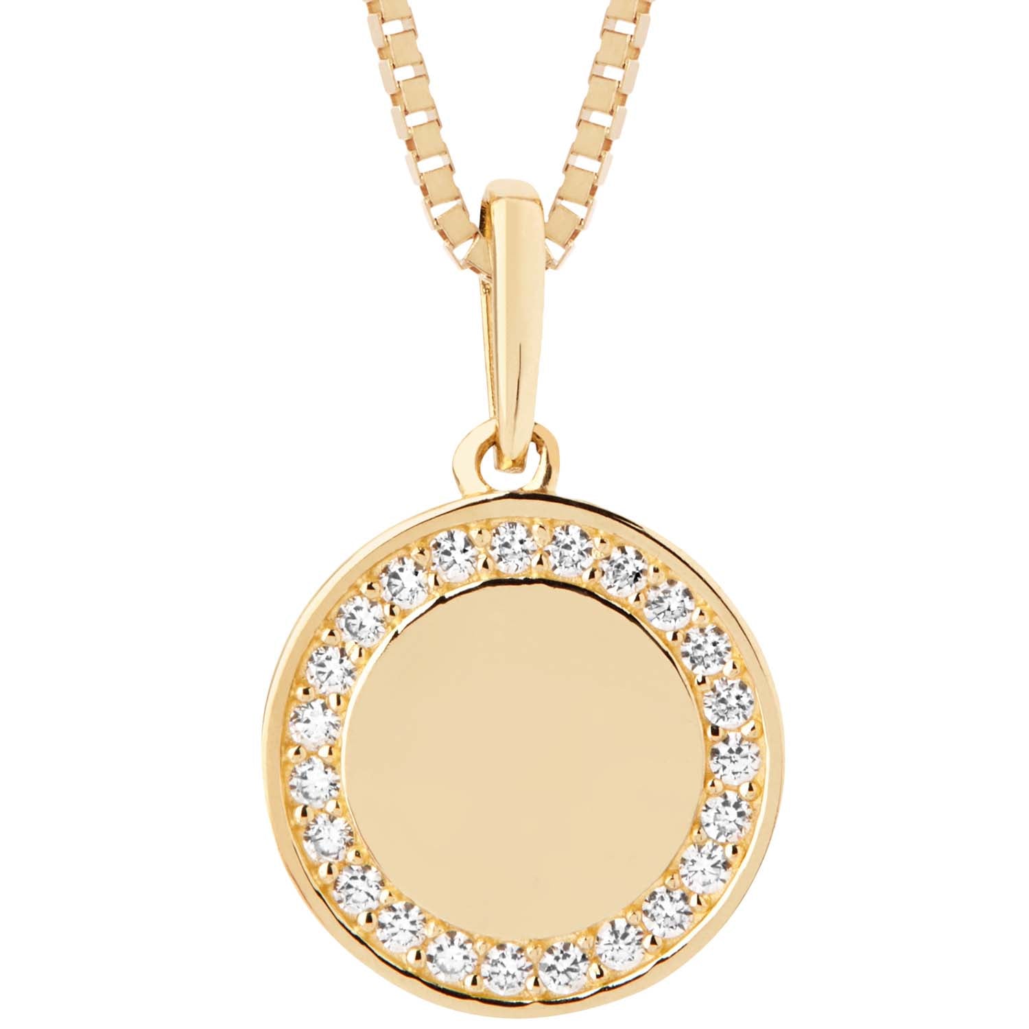 Aveny COLLECTION - Vedhæng m. plade og zirkonia, 10 mm - 8 kt. guld