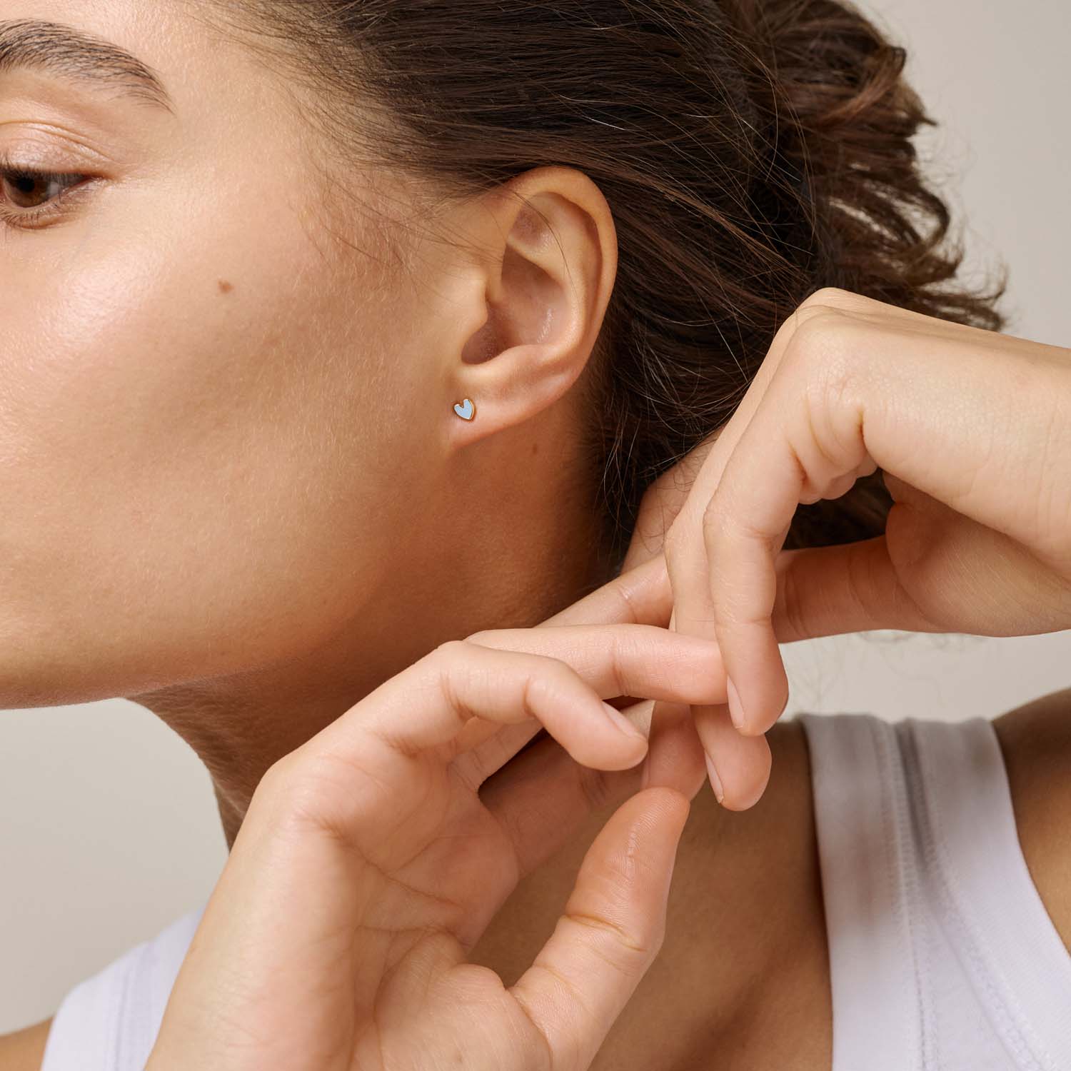 Enamel Copenhagen - Amore Steel Blue øreringe, 4 mm - Forgyldt sølv