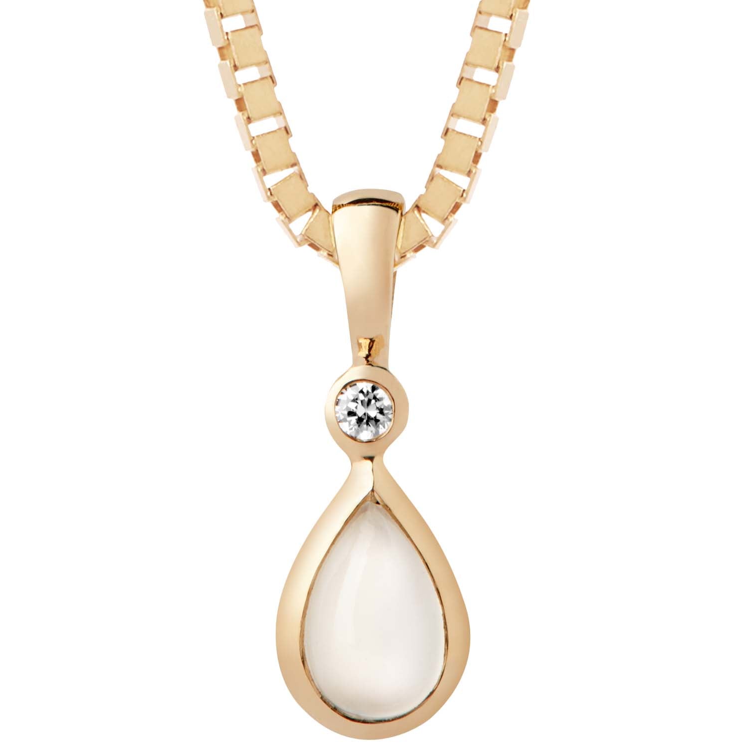 Aveny COLLECTION - Dråbevedhæng, zirkonia/månesten - 9 kt. guld