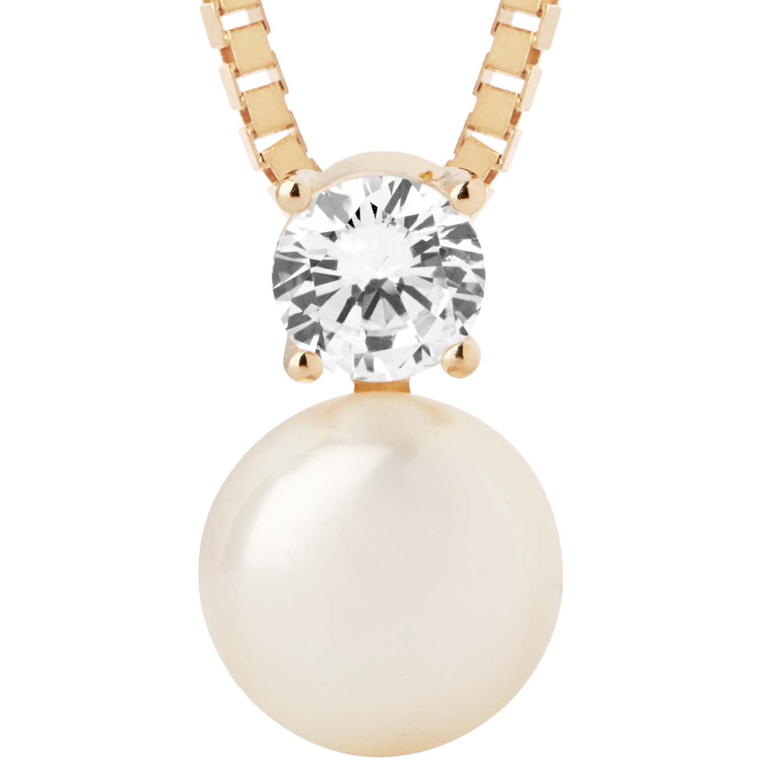 Aveny COLLECTION - Vedhæng m. ferskvandsperle, zirkonia/8-8,5 mm - 8 kt. guld
