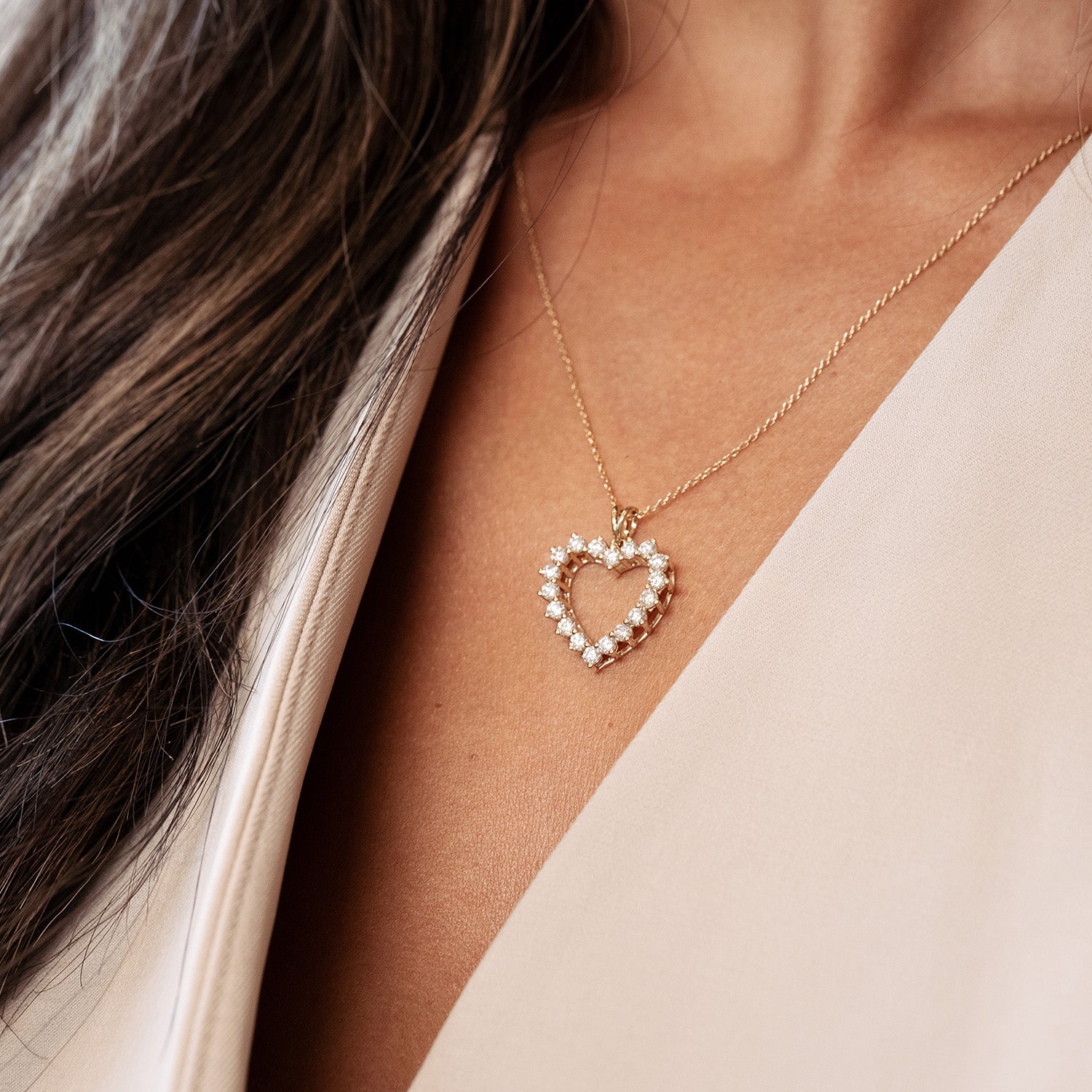 Vedhænget er udsmykket med funklende diamanter, der tilføjer en luksuriøs glans og gør det til et blikfang. Hjertesymbolet repræsenterer kærlighed og forbindelse, hvilket gør det til en meningsfuld gave til en, du holder af.