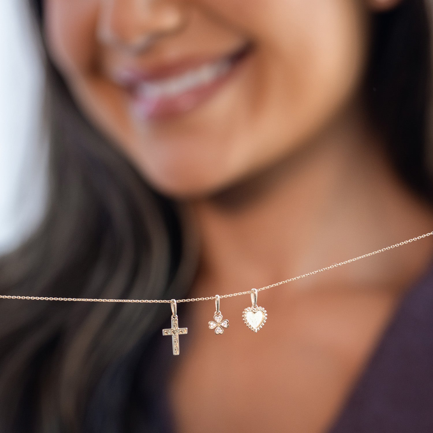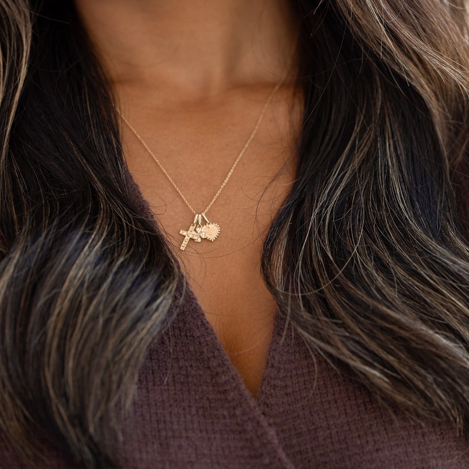 Aveny NINE K - Vedhæng m. kors/hjerter - 9 kt. guld
