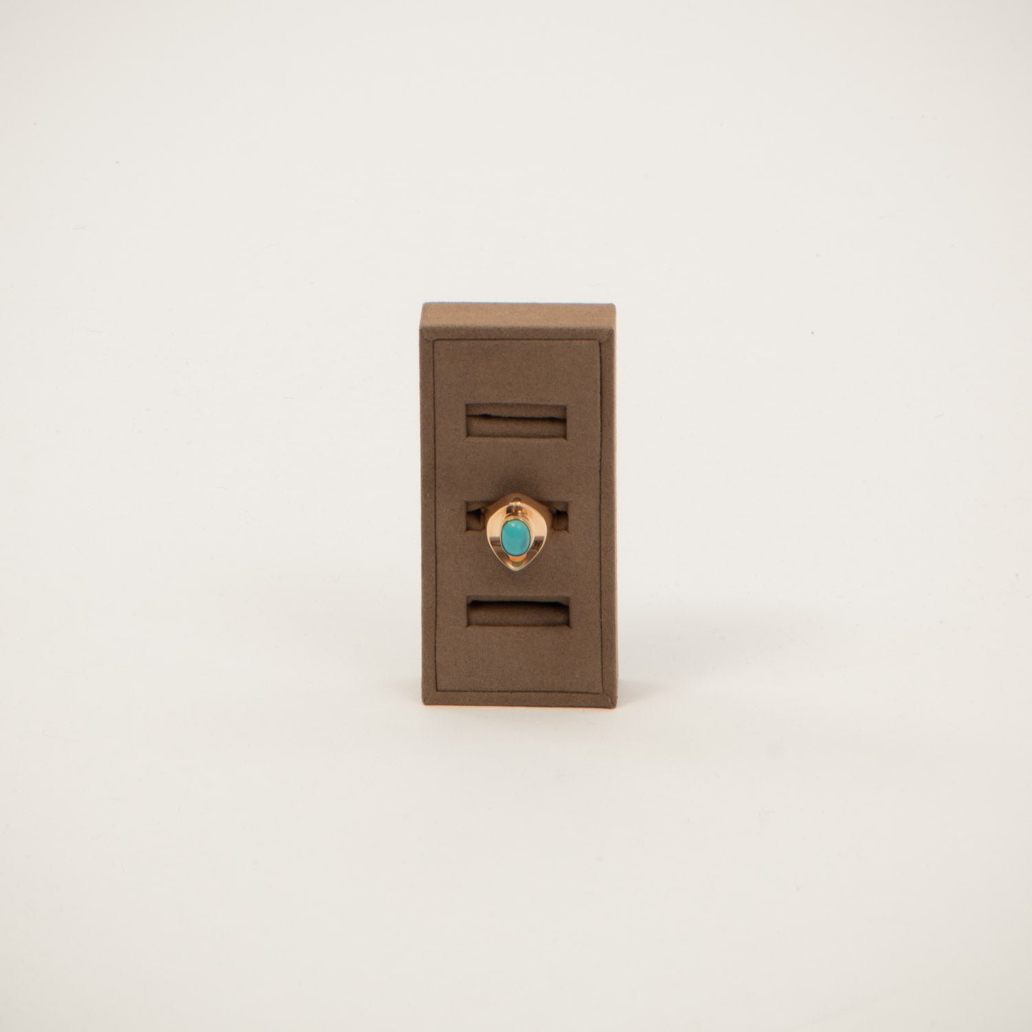 Voluminøs ring i str. 58, udført i 14 kt. rødguld, med en stor smuk oval cabochon turkis indfattet. Den estimerede nypris er 5.400 kr. Vær dog opmærksom på at varen købes som beset. Da der er tale om secondhand vintage smykker må der forventes at der kan forekomme en grad af brugsspor, ridser eller slitage. Vores Vibholm REGOLD smykker forhandles kun på vores hjemmeside.