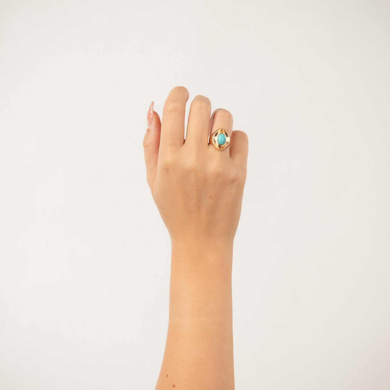Vibholm ReGold - Ring med oval cabochon turkis, str. 58 - 14 kt. guld