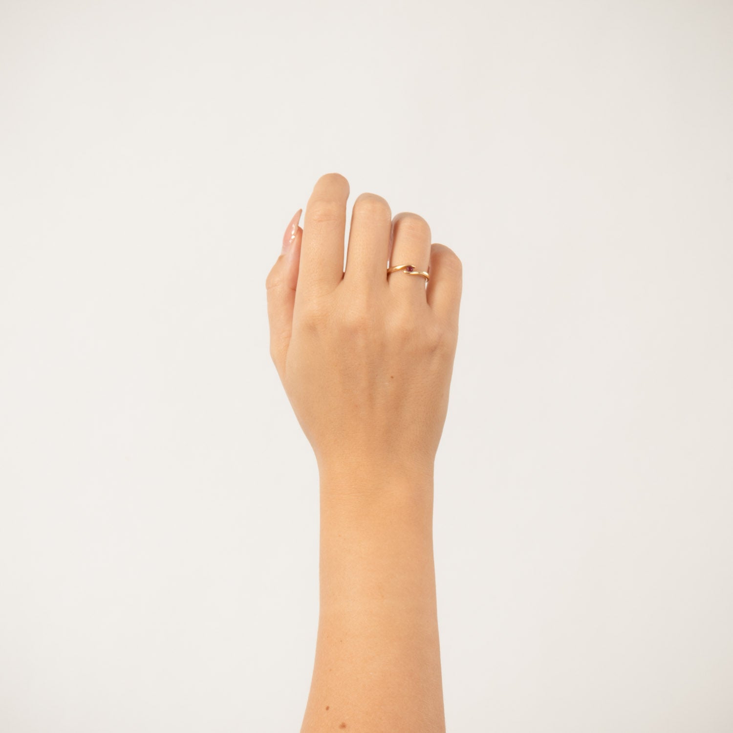 Ring i str. 55 udført i 14 kt. rødguld, med en smuk vinrød rubin. Den estimerede nypris er 3.900 kr. Vær dog opmærksom på at varen købes som beset. Da der er tale om secondhand vintage smykker må der forventes at der kan forekomme en grad af brugsspor, ridser eller slitage. Vores Vibholm REGOLD smykker forhandles kun på vores hjemmeside.