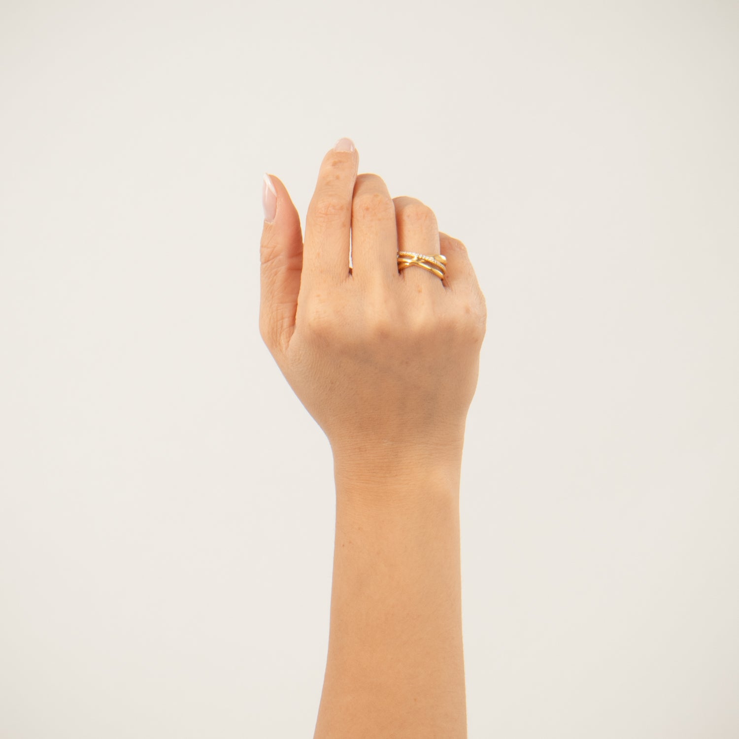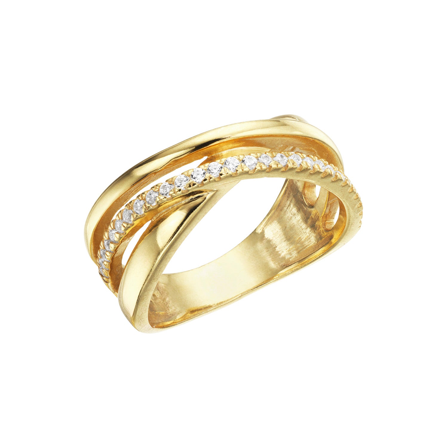 Den gyldne farve af forgyldt sølv giver ringen en varm og indbydende glød, der passer til enhver hudtone. Zirkonia-stenene er omhyggeligt indfattet for at sikre både holdbarhed og en fejlfri finish.