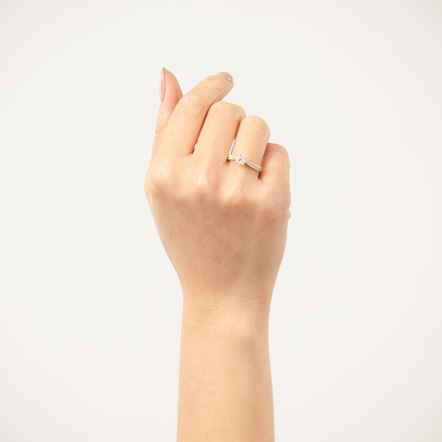 Den gyldne farve af ringen harmonerer smukt med diamantens klare glans, hvilket skaber et smykke, der er både sofistikeret og tidløst. Aveny LUXURY's ring er en hyldest til kvindelig elegance og en uundværlig del af enhver smykkesamling.