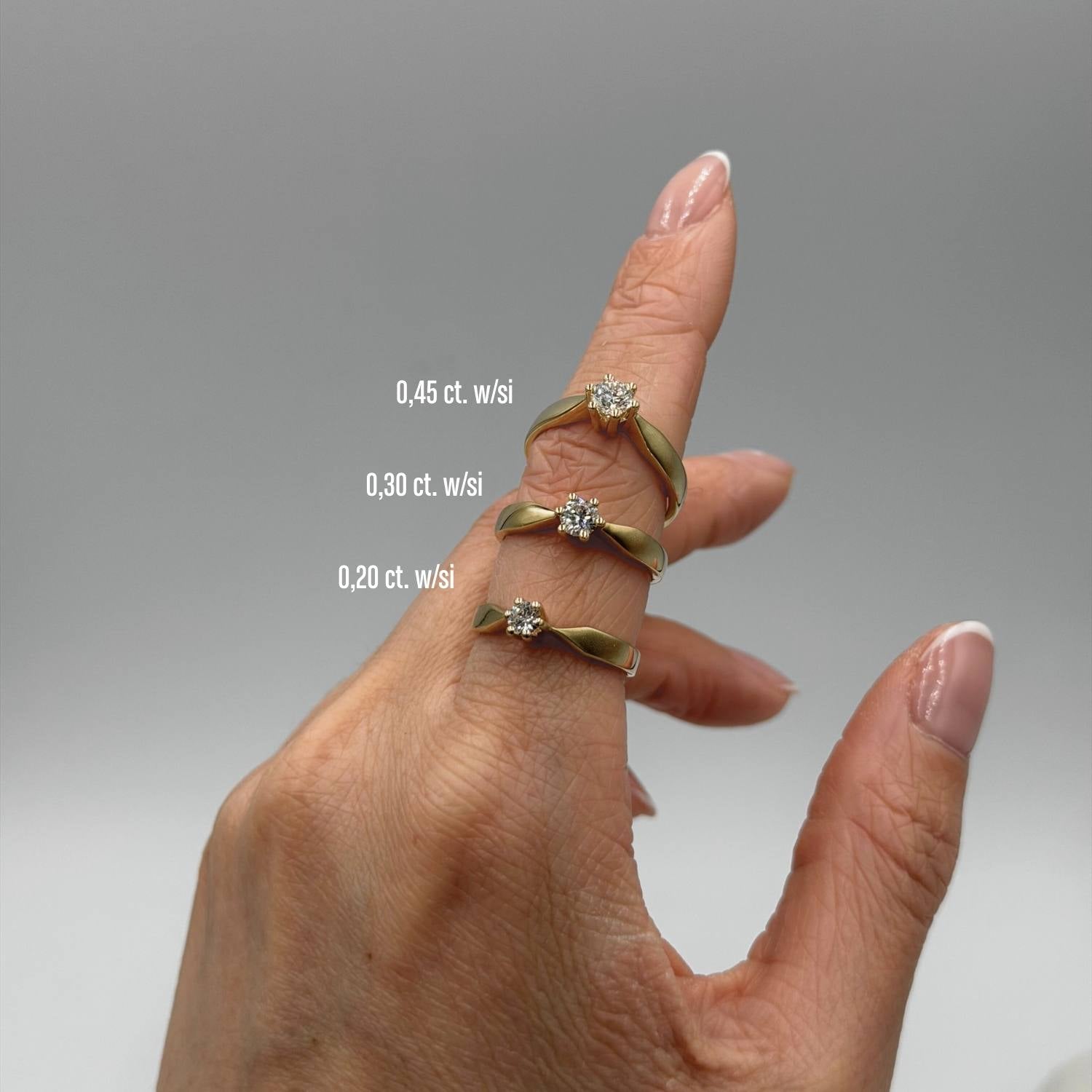 Fremstillet i 14 karat guld, er denne ring et symbol på raffinement og kvalitet. Den funklende diamant på 0,20 ct. w/si tilføjer en subtil, men iøjnefaldende glans, der fanger lyset fra alle vinkler.