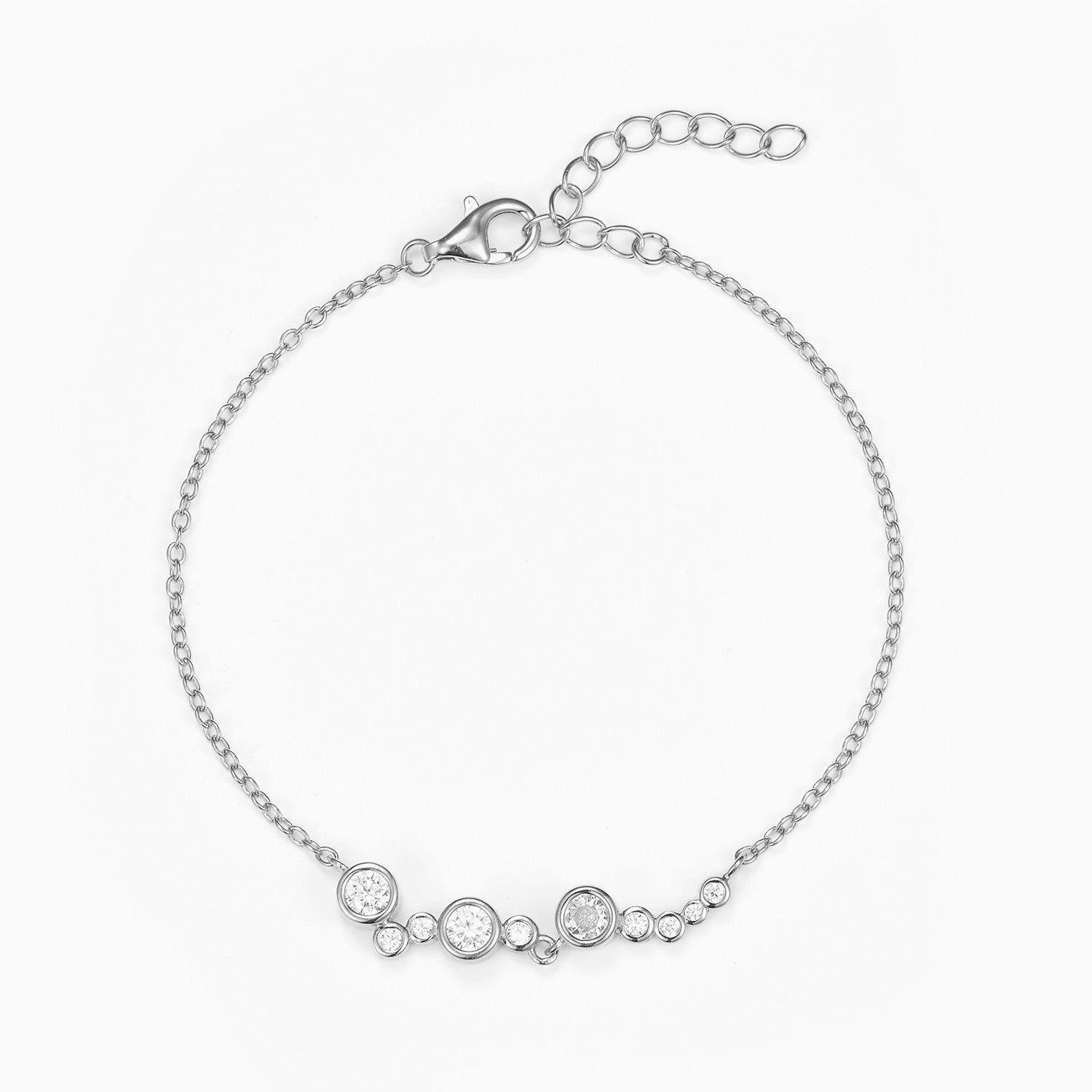 Armbåndet har en delikat kæde, der smyger sig elegant om håndleddet. De indfattede zirkonia sten skaber en smuk kontrast til det polerede sølv, hvilket giver armbåndet en luksuriøs følelse. Den rhodinerede overflade sikrer, at sølvet bevarer sin glans og modstår anløbning, hvilket gør det til et holdbart valg.