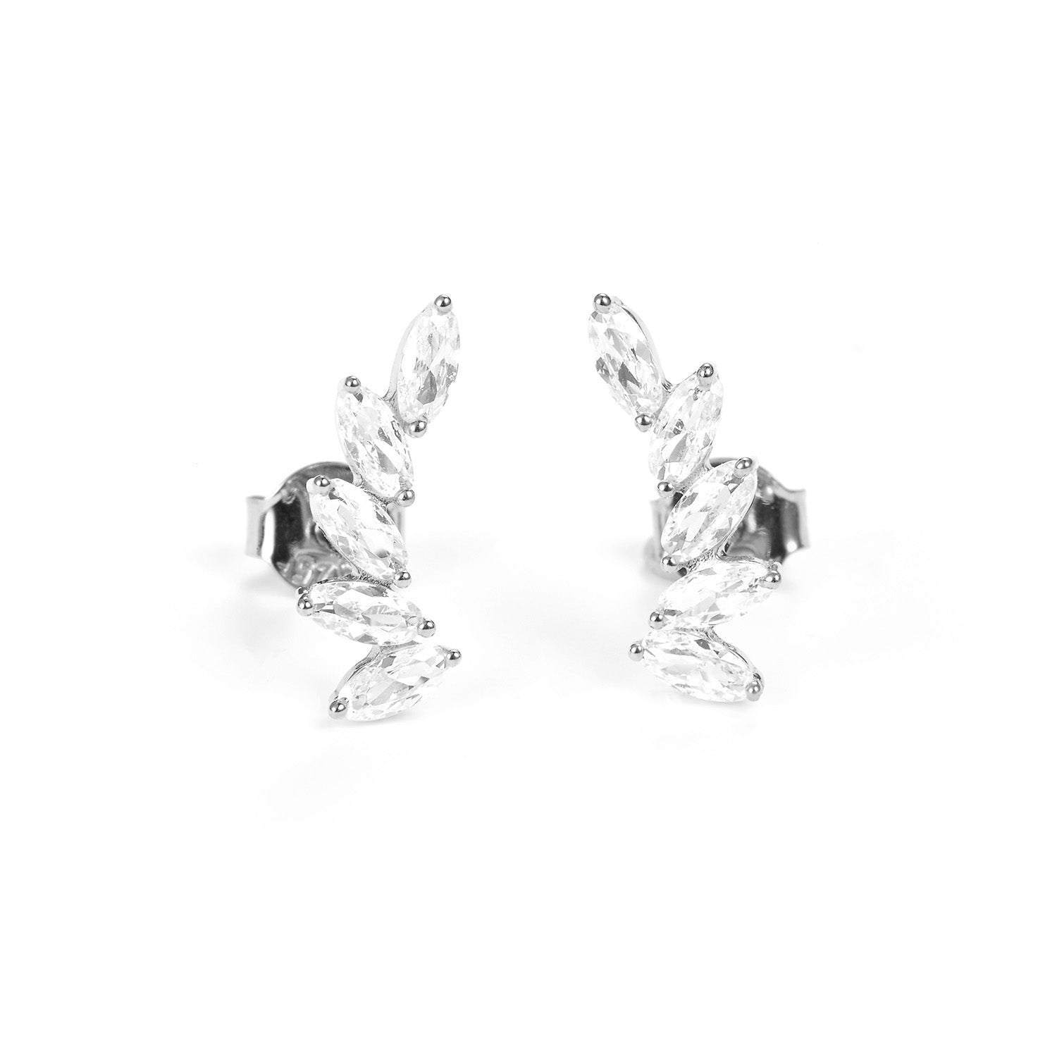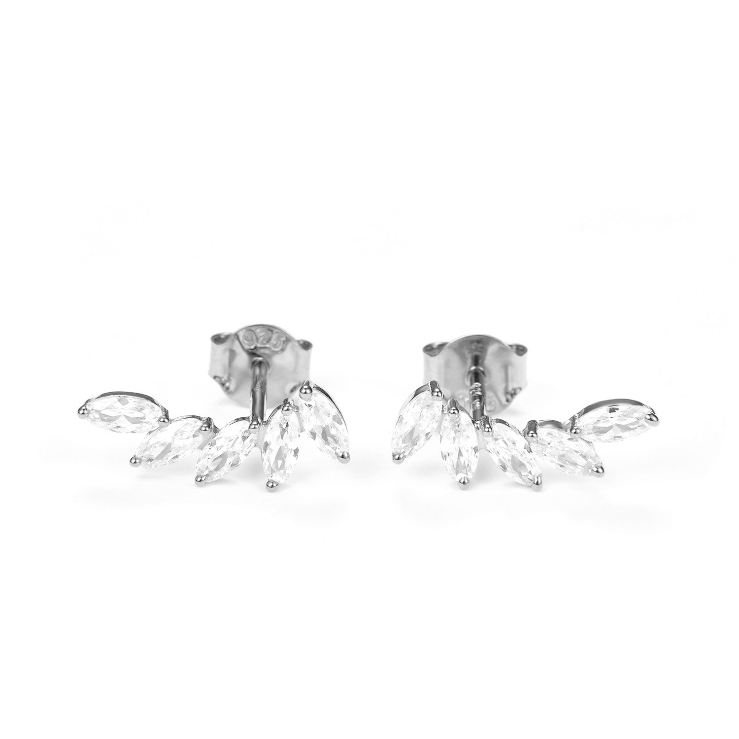 De klare zirkonia-sten er omhyggeligt indfattet og skaber en subtil, men iøjnefaldende glans, der fanger lyset fra alle vinkler. Sølvets glatte tekstur og den raffinerede form sikrer, at ørestikkerne føles behagelige at bære hele dagen.