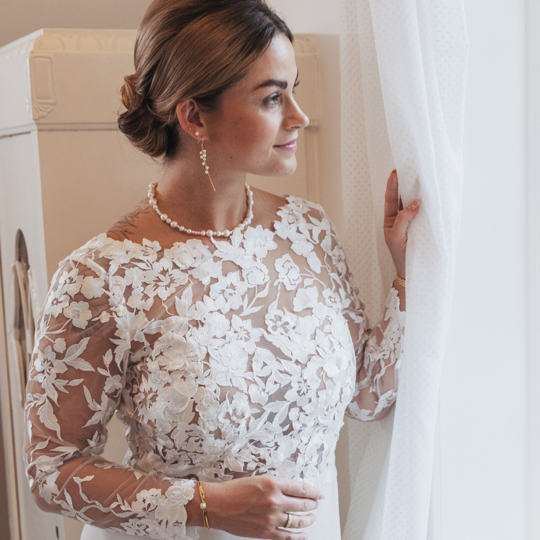 Om du er brud eller gom, vil de små detaljer fuldende looket, og sikre at du stråler på din store dag. Style din hvide kjole med et udsøgt og strålende smykkesæt.