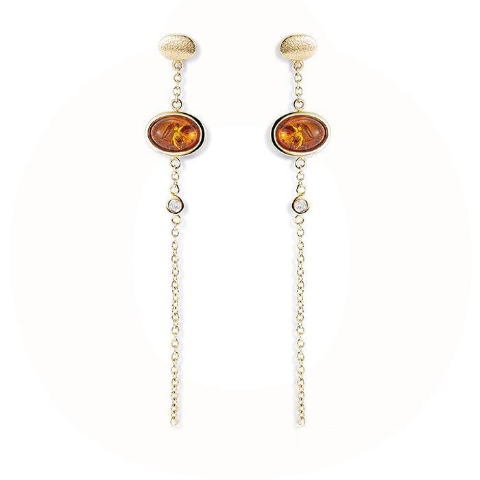 Aagaard by S - Ørehængere - 14 kt. guld m/oval rav og diamanter 14983991-98