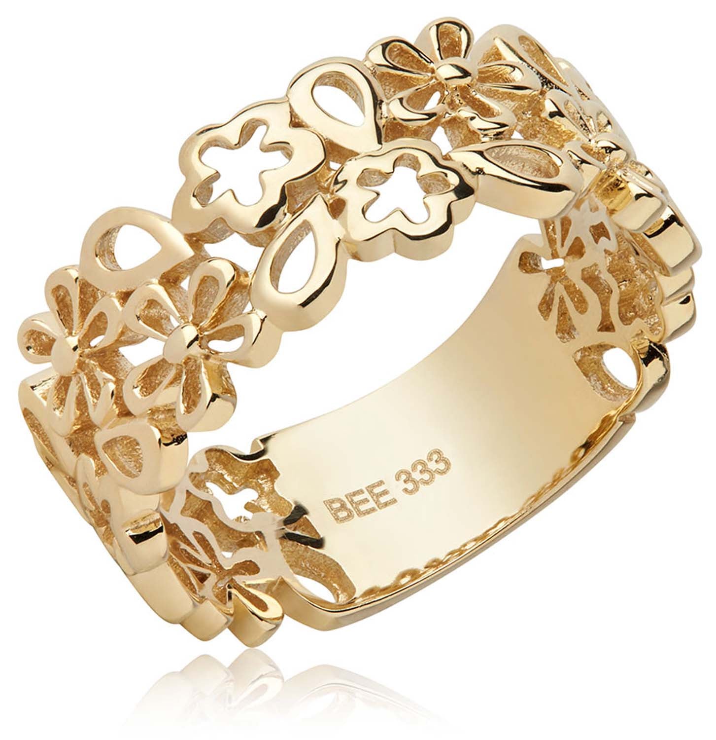 Aveny COLLECTION - Bred ring m. blomster motiv - 8 kt. guld