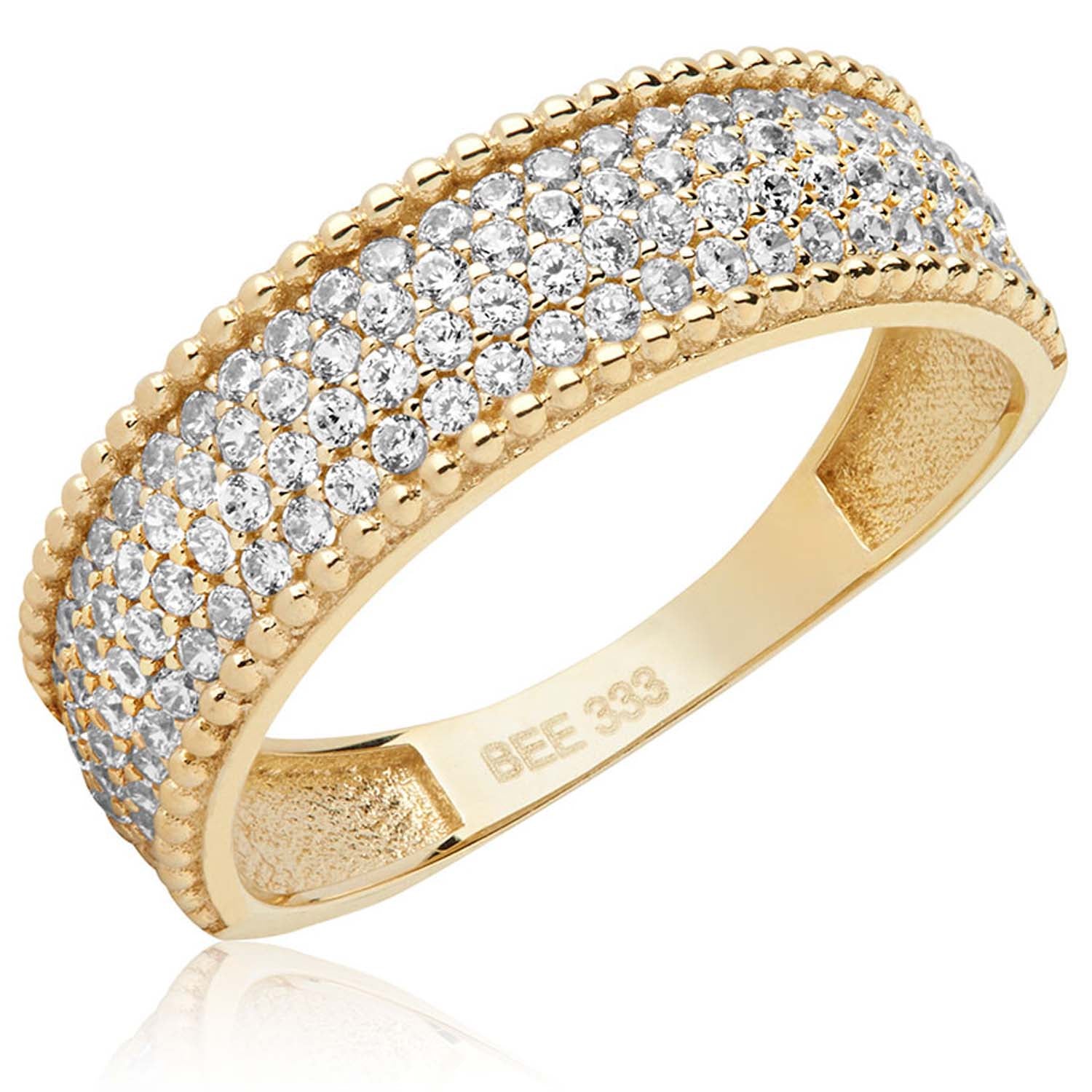 Aveny COLLECTION - Bred ring. zirkonia og kugler - 8 kt. guld
