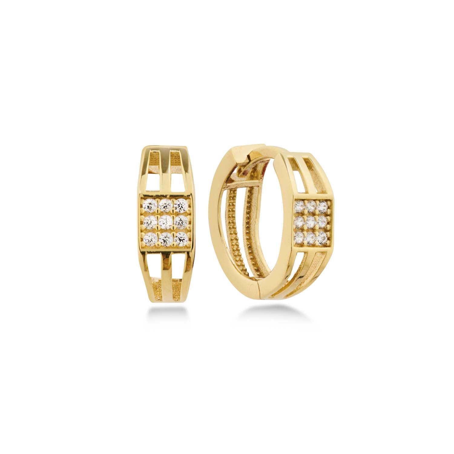 Aveny COLLECTION - Creoler m. 3 tråde, zirkonia/Ø12 mm - 8 kt. guld