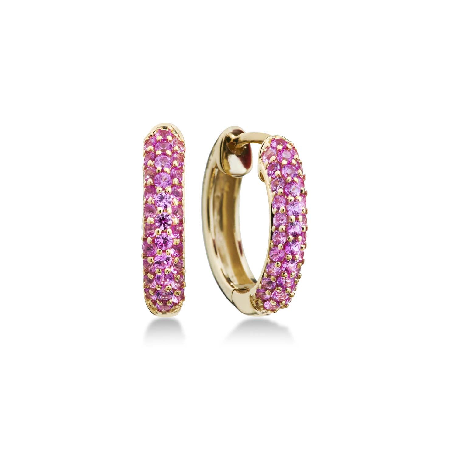 Aveny COLLECTION - Creoler m. 62 stk. pink safir, Ø14 mm - 14 kt. guld