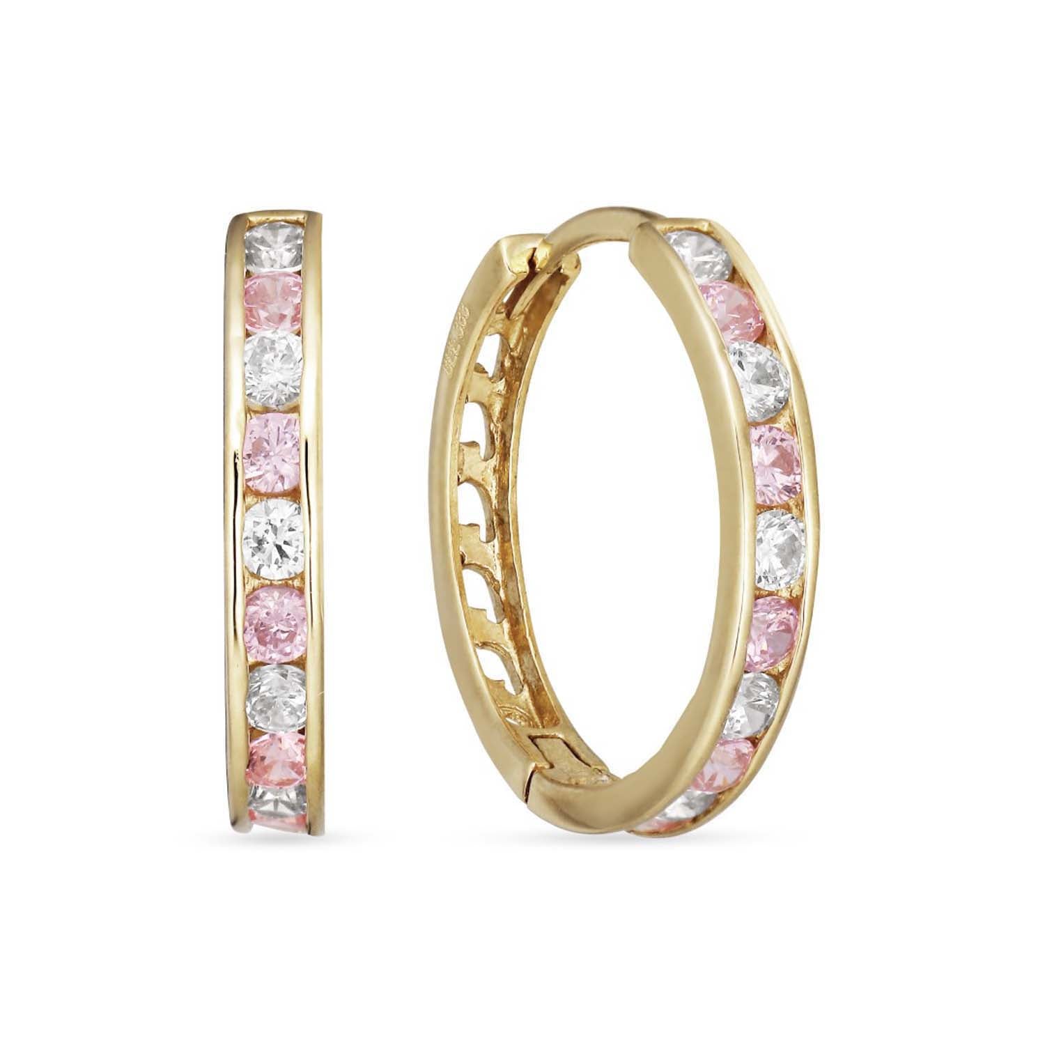 Aveny COLLECTION - Creoler m. pink/hvid zirkonia, Ø18mm - 8 kt. guld