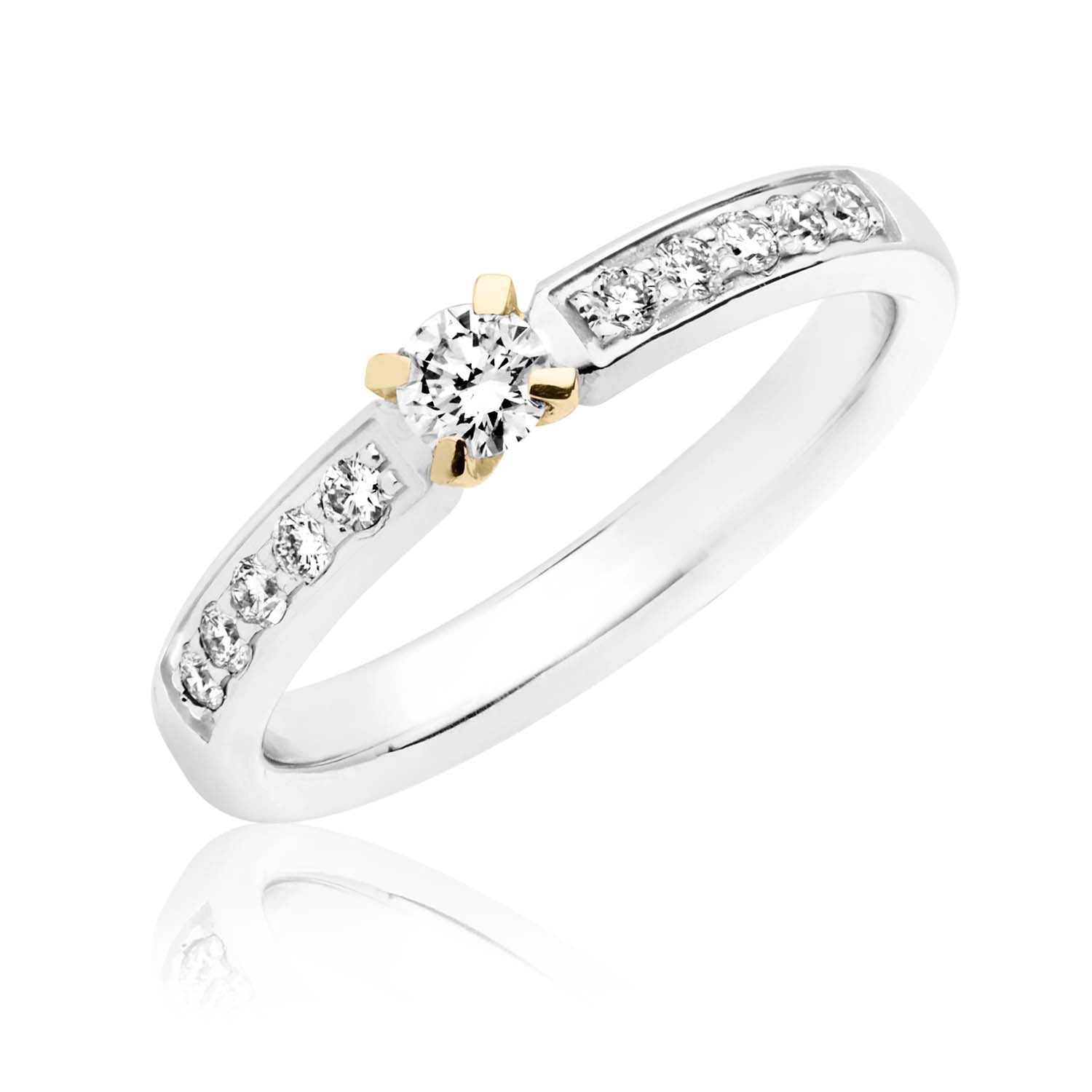 Aveny COLLECTION - Diamantring 10 x0,02ct og 1x0,20ct brillanter - 14 kt. hvidguld