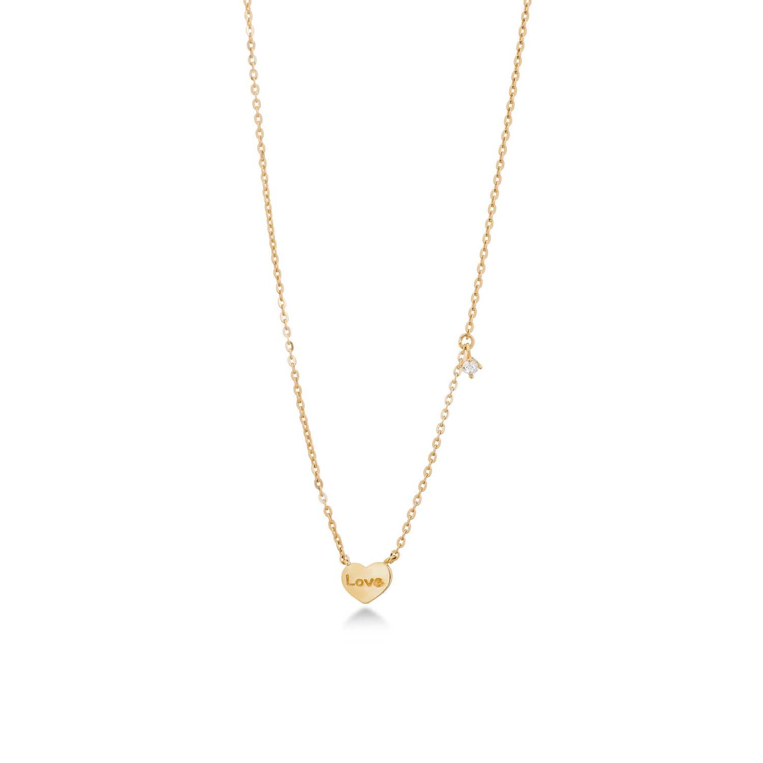 Aveny COLLECTION - Hjertehalskæde med tekst og zirkonia, 40+2 cm - 8 kt. guld