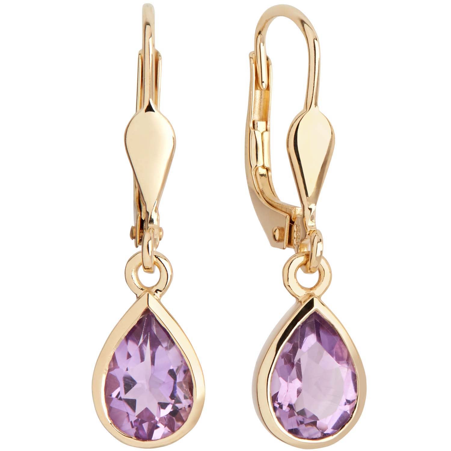 Aveny COLLECTION - Ørehænger m. brichure ametyst, 7x5 mm - 8 kt. guld