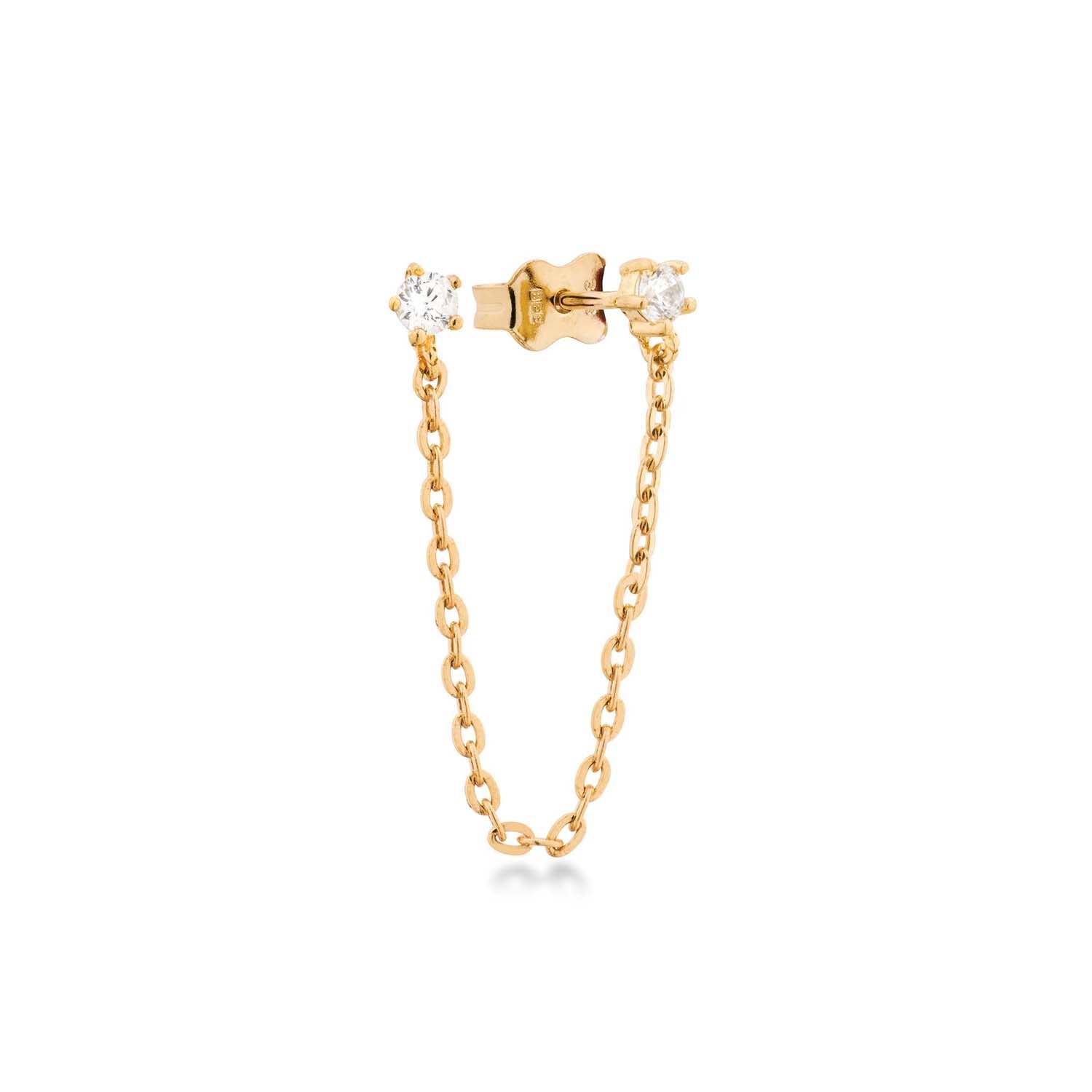 Aveny COLLECTION - Ørestik med kæde og zirkonia, 2x1 mm - 8 kt. guld