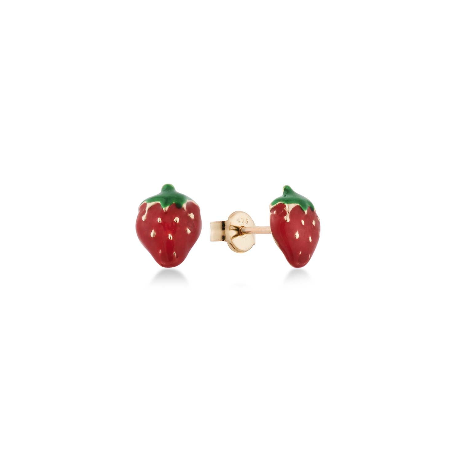 Aveny COLLECTION - Ørestikker m. jordbær, grøn/rød emalje - 14 kt. guld