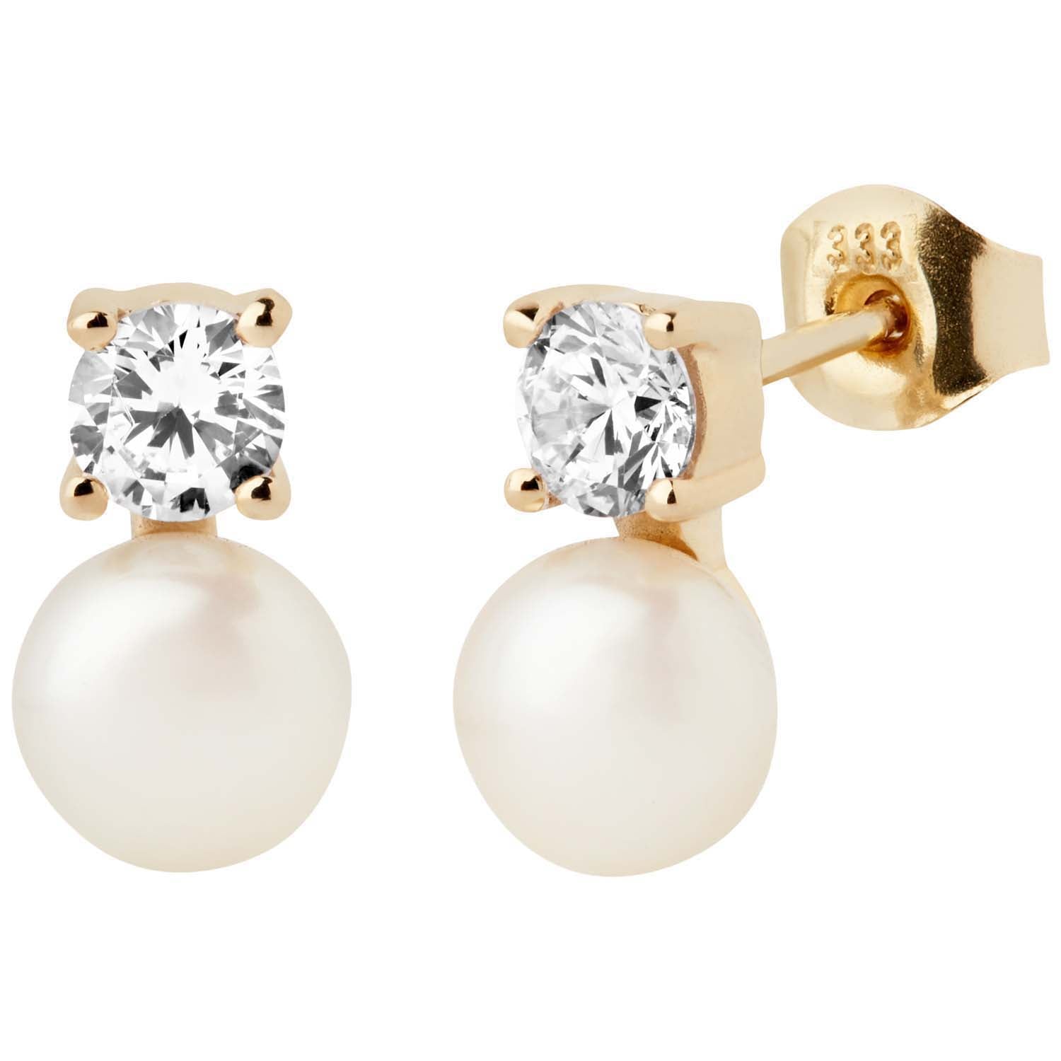 Aveny COLLECTION - Ørestikker m. med zirkonia og ferskvandsperler, 6-6,5 mm - 8 kt. guld