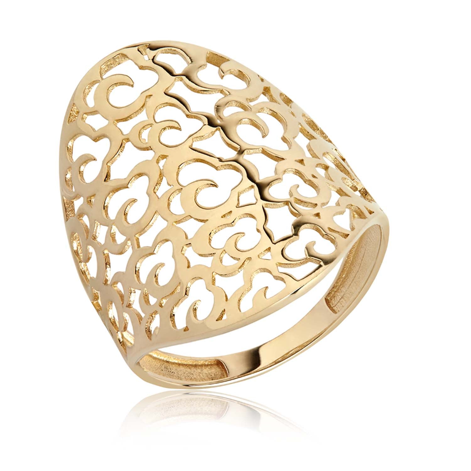 Aveny COLLECTION - Oval ring med blomster - 14 kt. guld