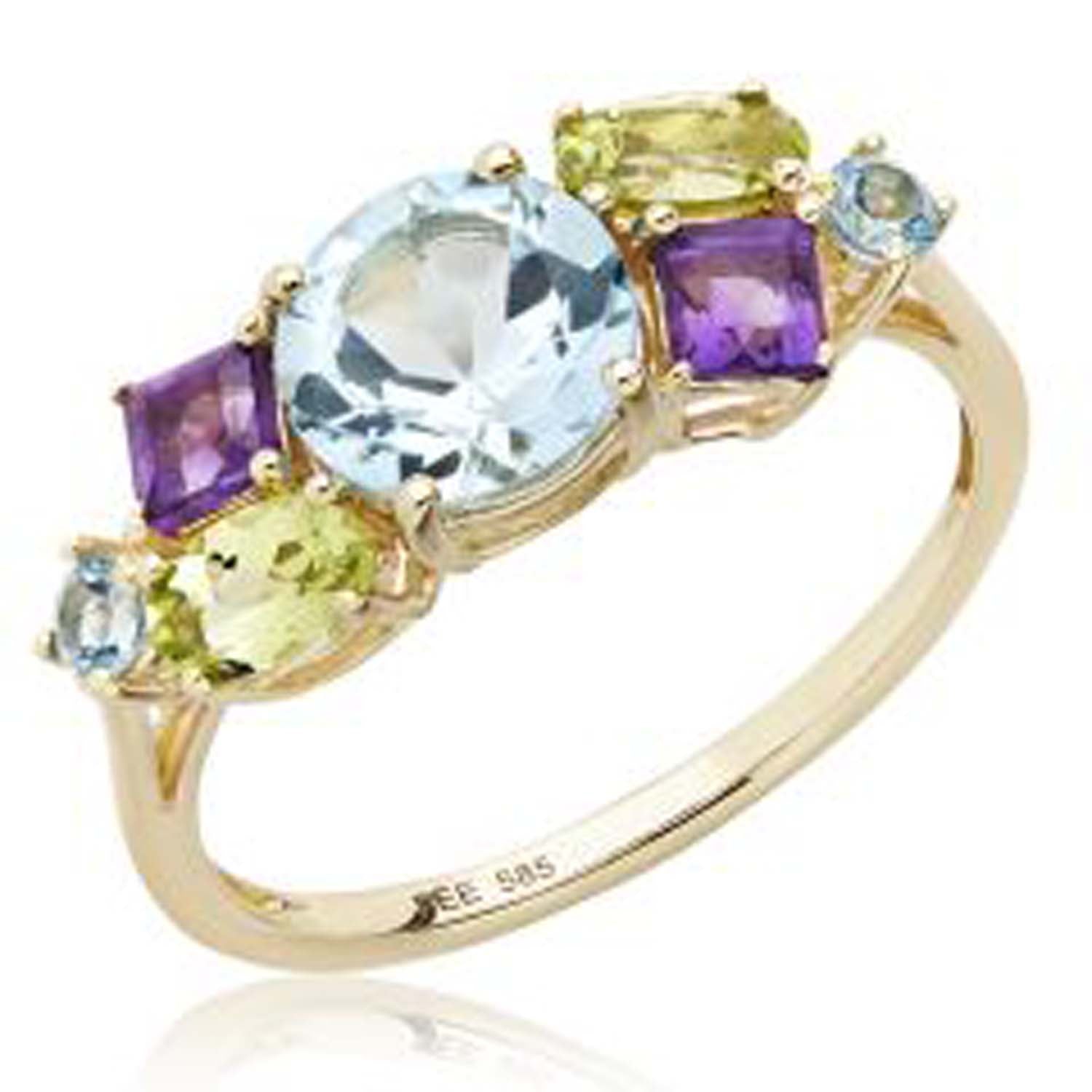 Aveny COLLECTION - Ring, topas/peridot/ameth - 14 kt. guld