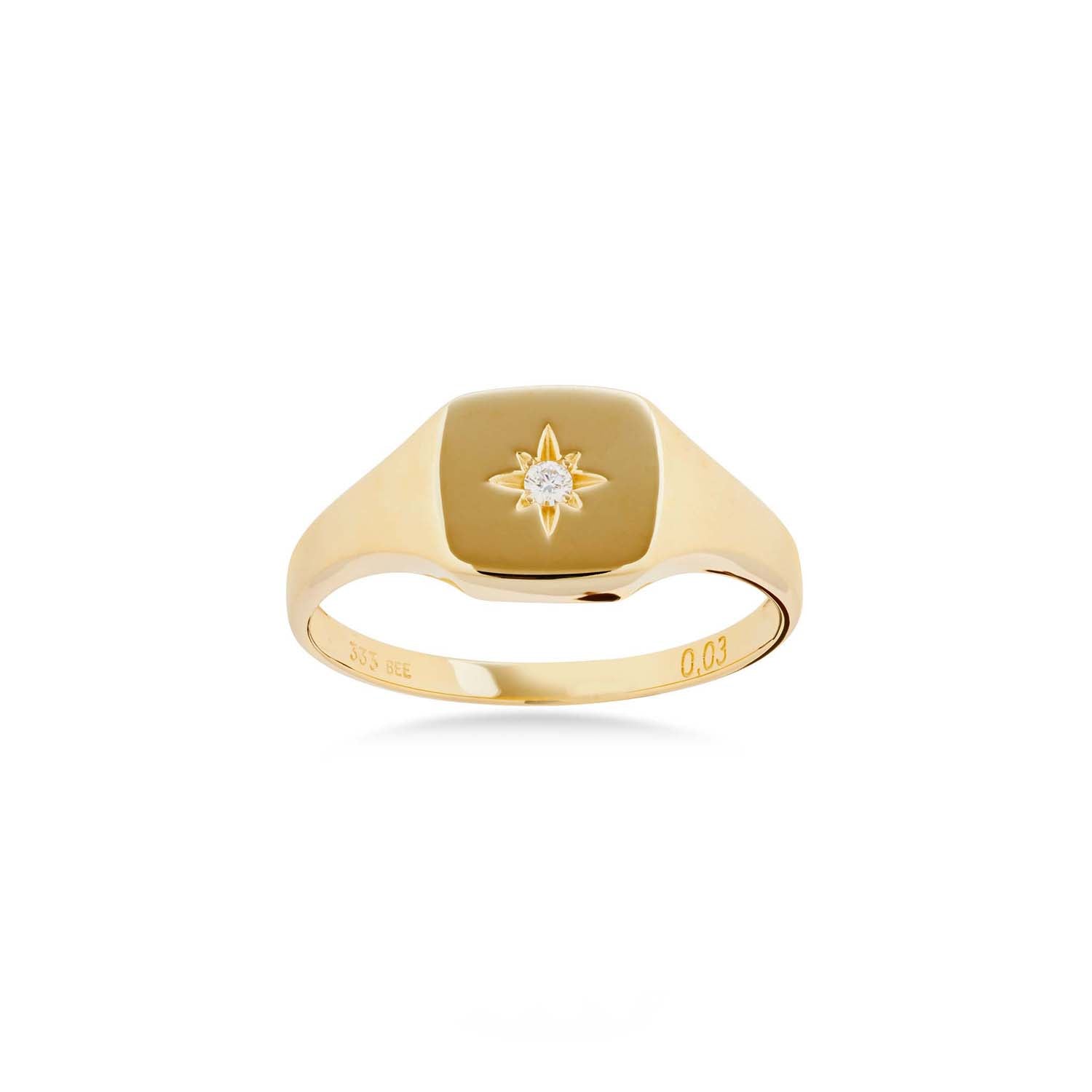 Aveny COLLECTION - Signet ring m. stjerne og 1 brillant, 0,03ct w/si - 8 kt. guld