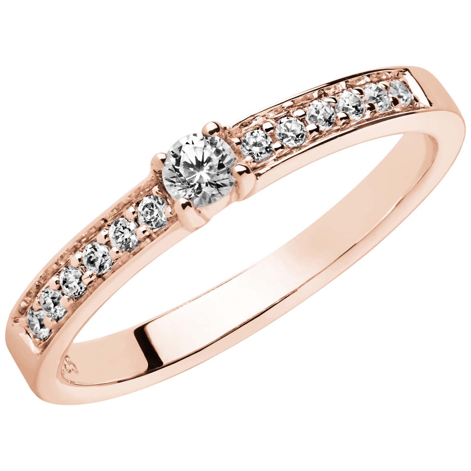 Aveny COLLECTION - Solitairering m. zirkonia og ned langs skinne - Rosaforgyldt sølv